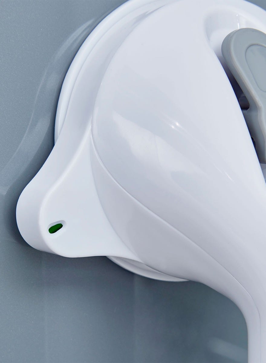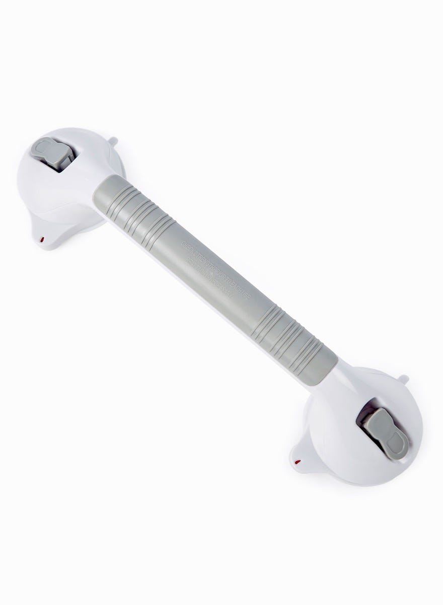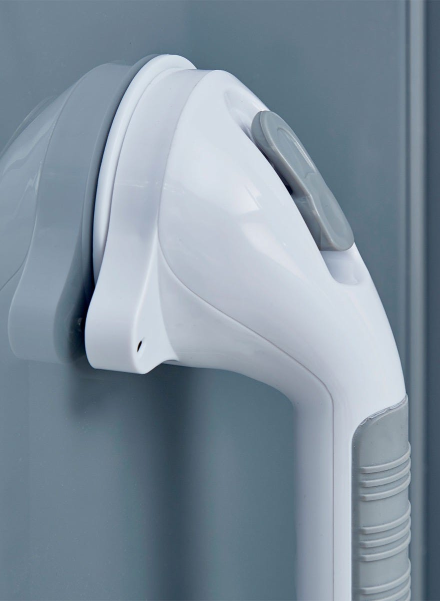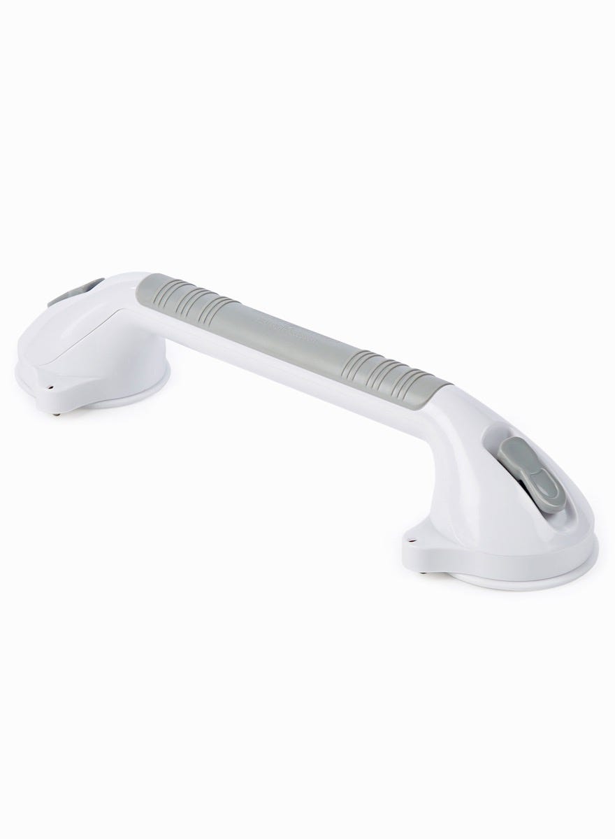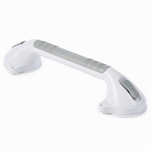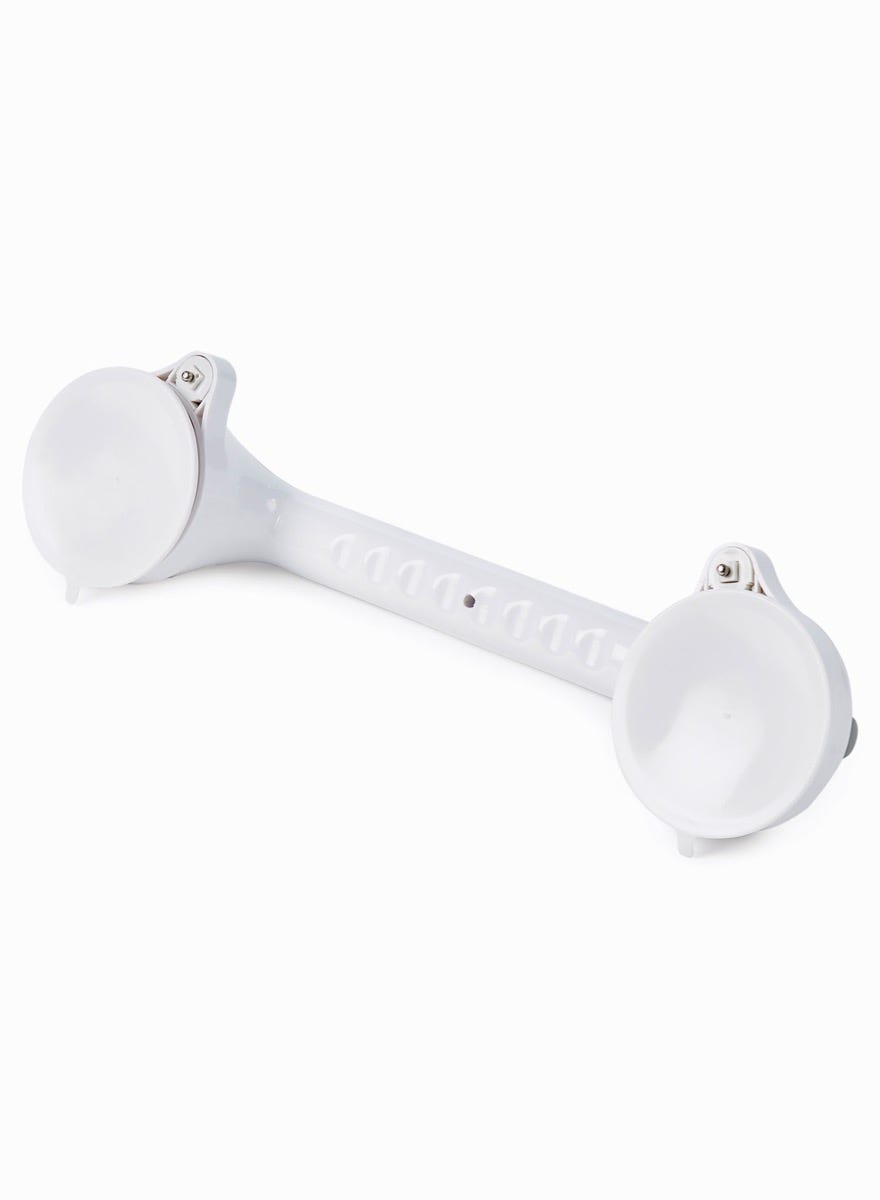 This 18" Super Suction Grab Bar uses large rubber suction cups to create a strong vacuum seal on smooth, non-porous surfaces, providing an extra point of support in the bathroom.