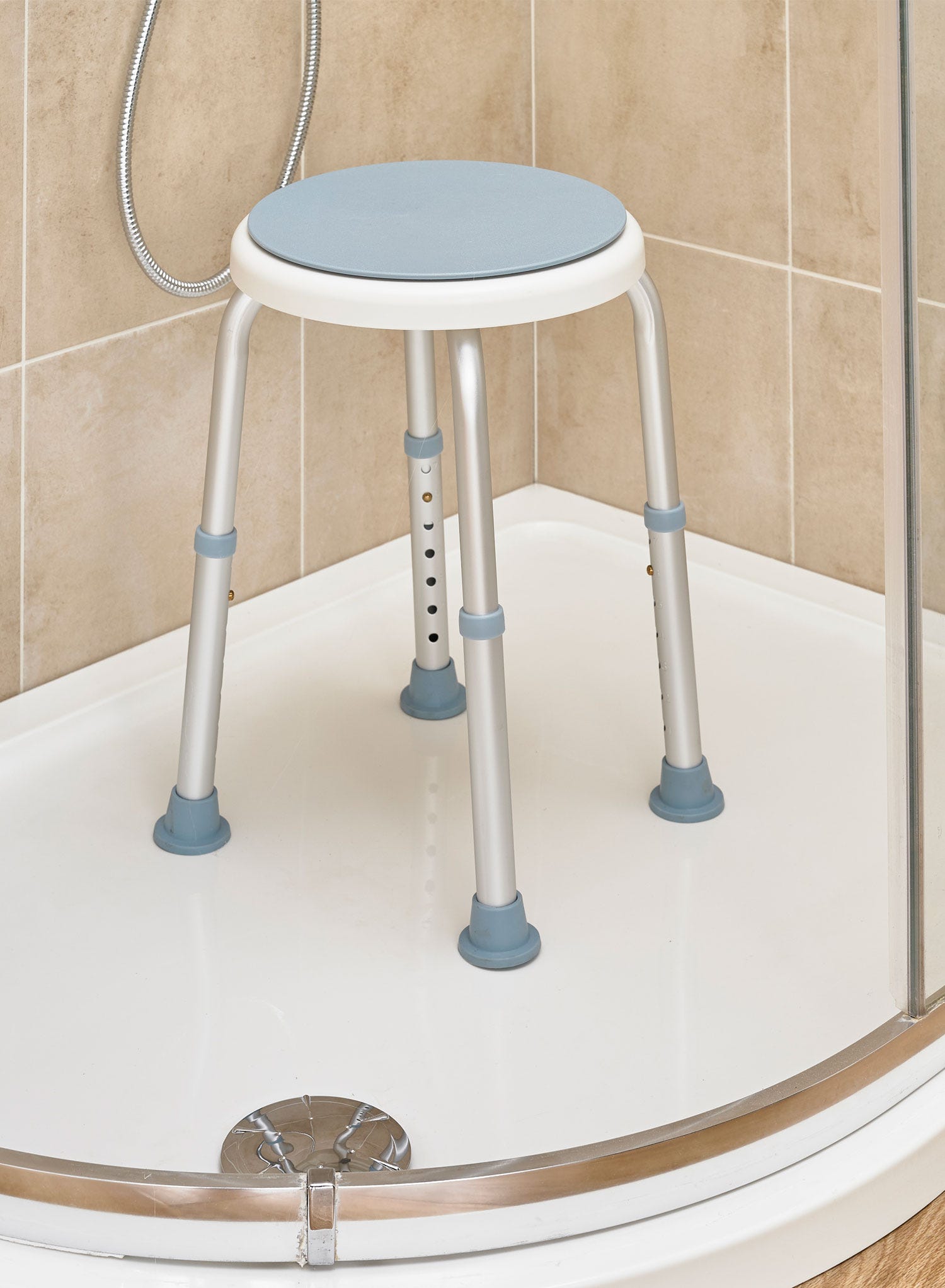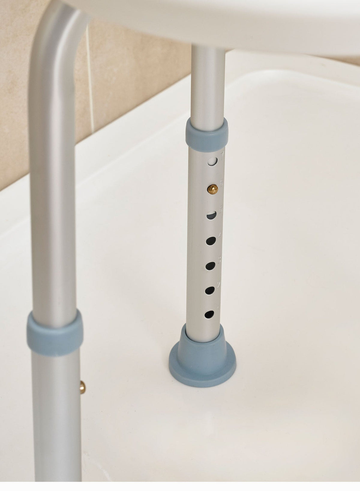Height-adjustable legs allow you to set the seat at a level that suits you and your shower or bath, while non-slip rubber ferrules on the feet help keep everything stable on wet surfaces.
