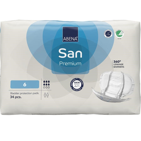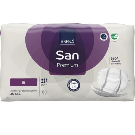 Abena San 5 Premium Incontinence Pads are designed for moderate to heavy incontinence and are anatomically shaped for your comfort and protection. They have an excellent fit and are breathable to help keep your skin healthy.
