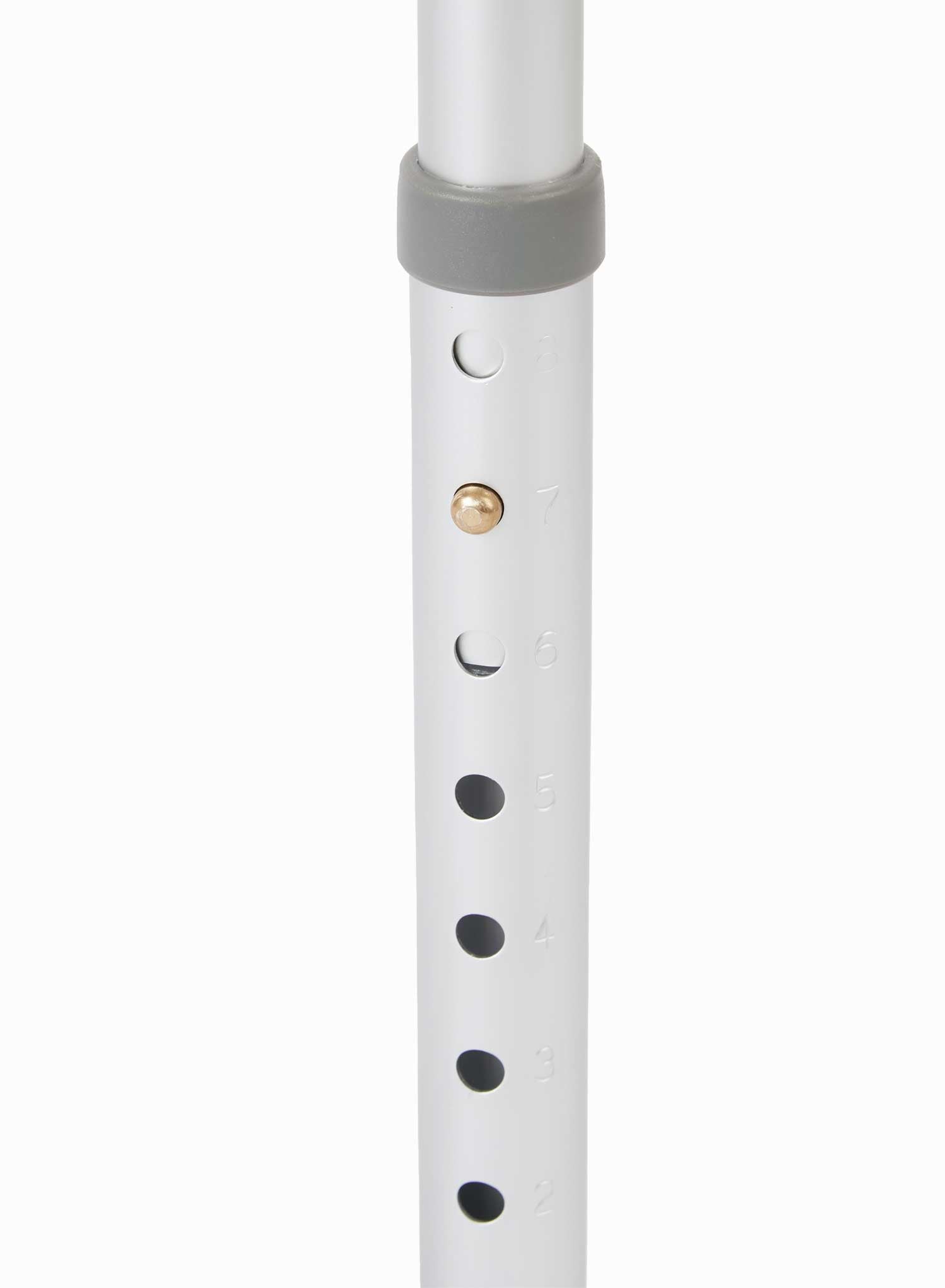The lightweight aluminium frame is corrosion-resistant and features eight push-pin height settings between approximately 35.5–53.5cm (14–21"), so you can choose the height that feels most secure. Despite its light weight, the frame is strong and stable.