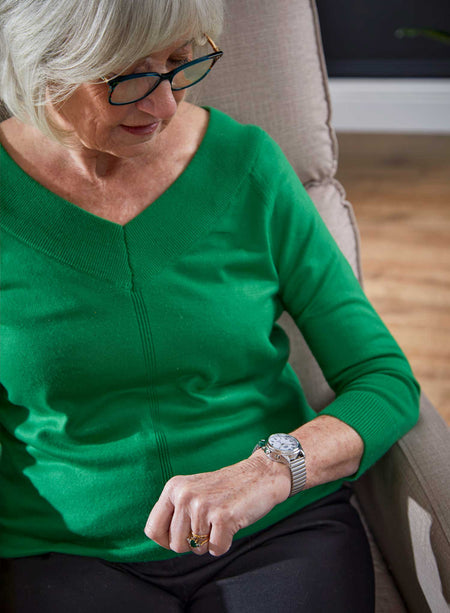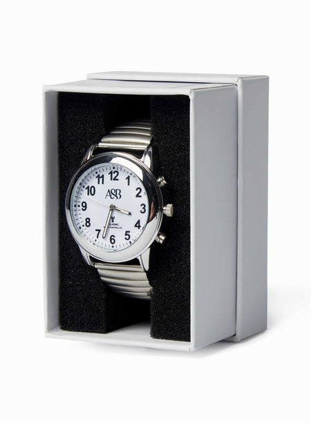 Beyond that beautiful watch face is an even more useful feature – a talking function that’s ideal for those who rely on their hearing more than their sight. Just press the button to hear the time and date spoken in a clear British voice. You can even set optional alarms and hourly time announcements.
