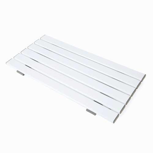 The underside brackets can be adjusted to fit most baths up to around 66.5cm wide. By loosening the fasteners, you can reposition the brackets so the board sits snugly across your tub, helping to prevent movement or slipping.