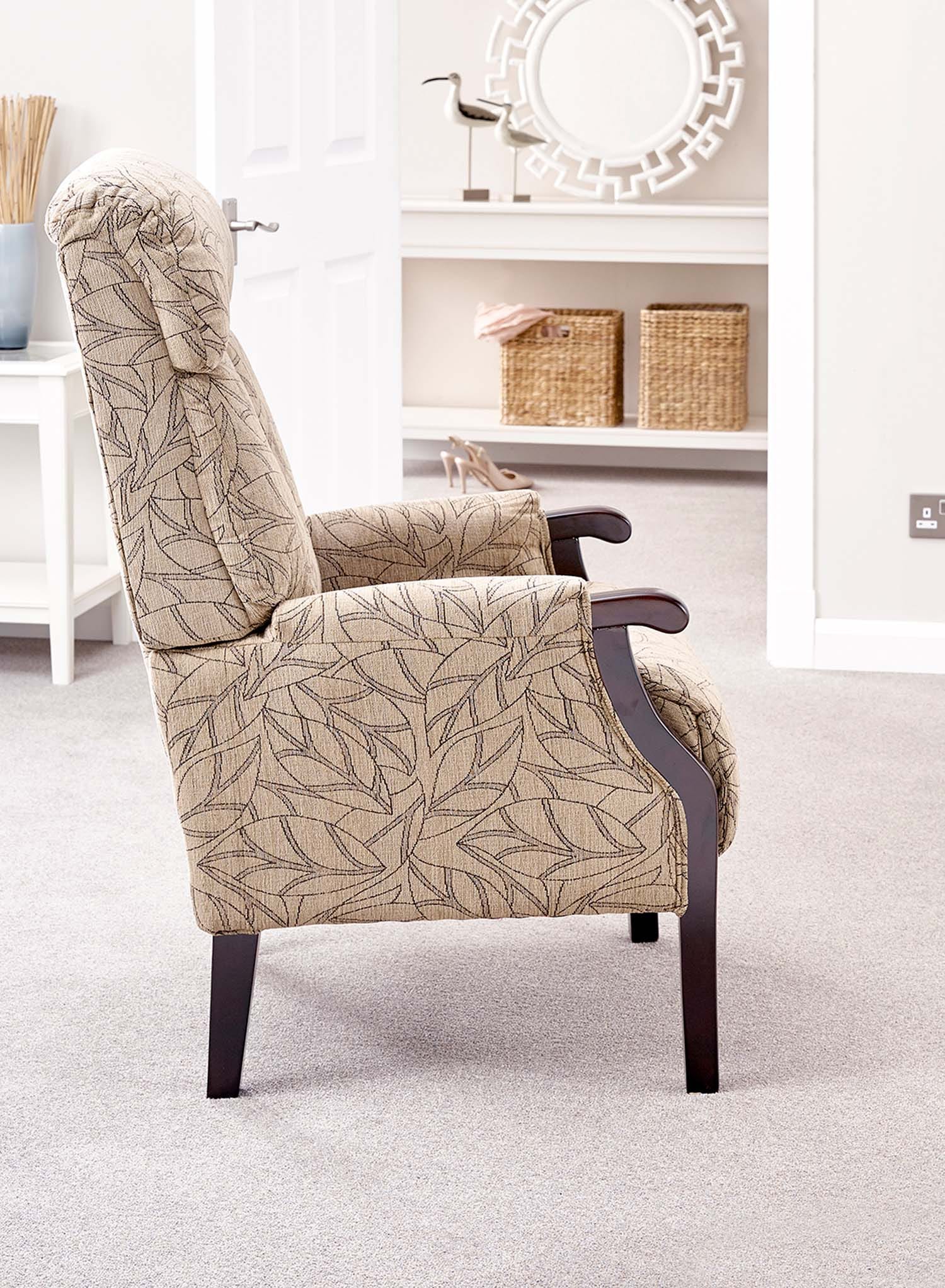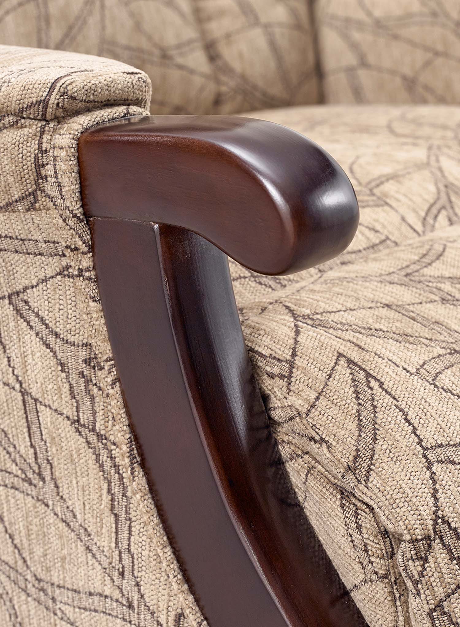 The Aster features a tailored backrest with padding designed to provide the most accurate pressure relief and support for your back while encouraging good posture and easing aches and pains in the back and shoulders. The increased padding density in the head and neck area encourages good posture, so you'll be free from aches and pains not only while you relax but when you rise from the chair too. The in-built lumbar padding provides exceptional support and keeps you free from those niggling aches and pains for longer. And the solid wood knuckles are more than a stylish touch, offering additional grip to help you rise safely from the chair.