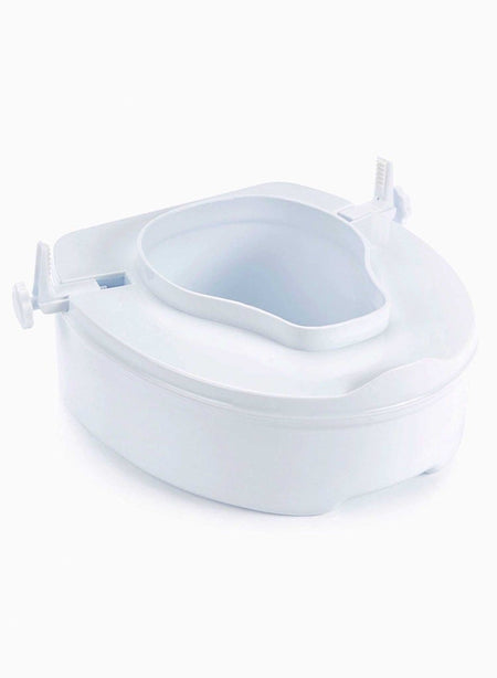 The Basica Raised Toilet Seat fits securely over your existing toilet seat using moulded plastic brackets on each side, helping to prevent movement while in use.