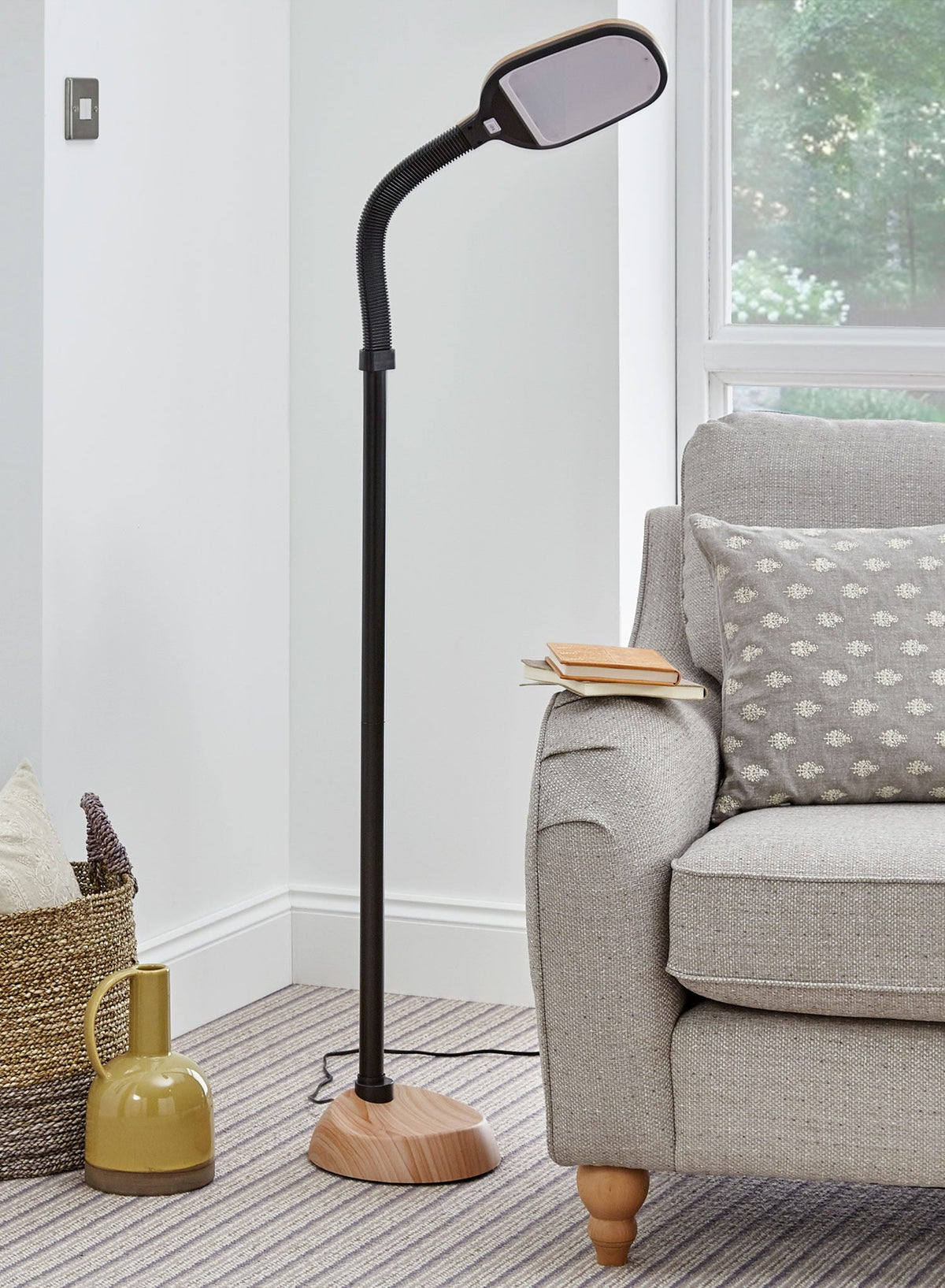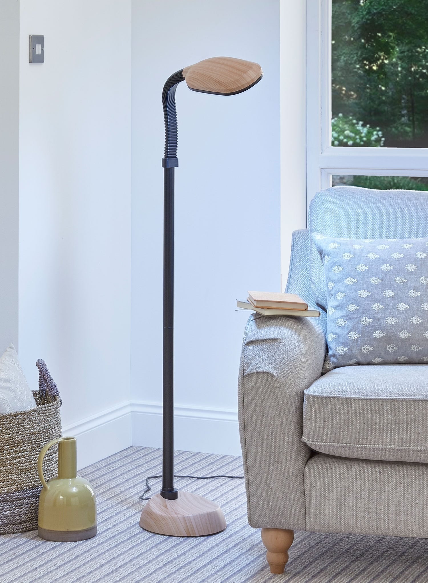 The Beech Effect LED Floor Lamp is a functional and attractive addition to any home or care environment. With a flexible arm, a wide and stable base, and an energy efficient LED bulb offering 50,000 hours of lighting time.
