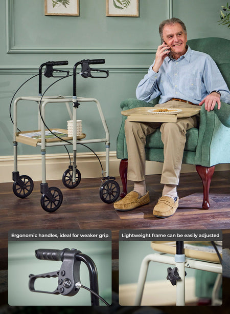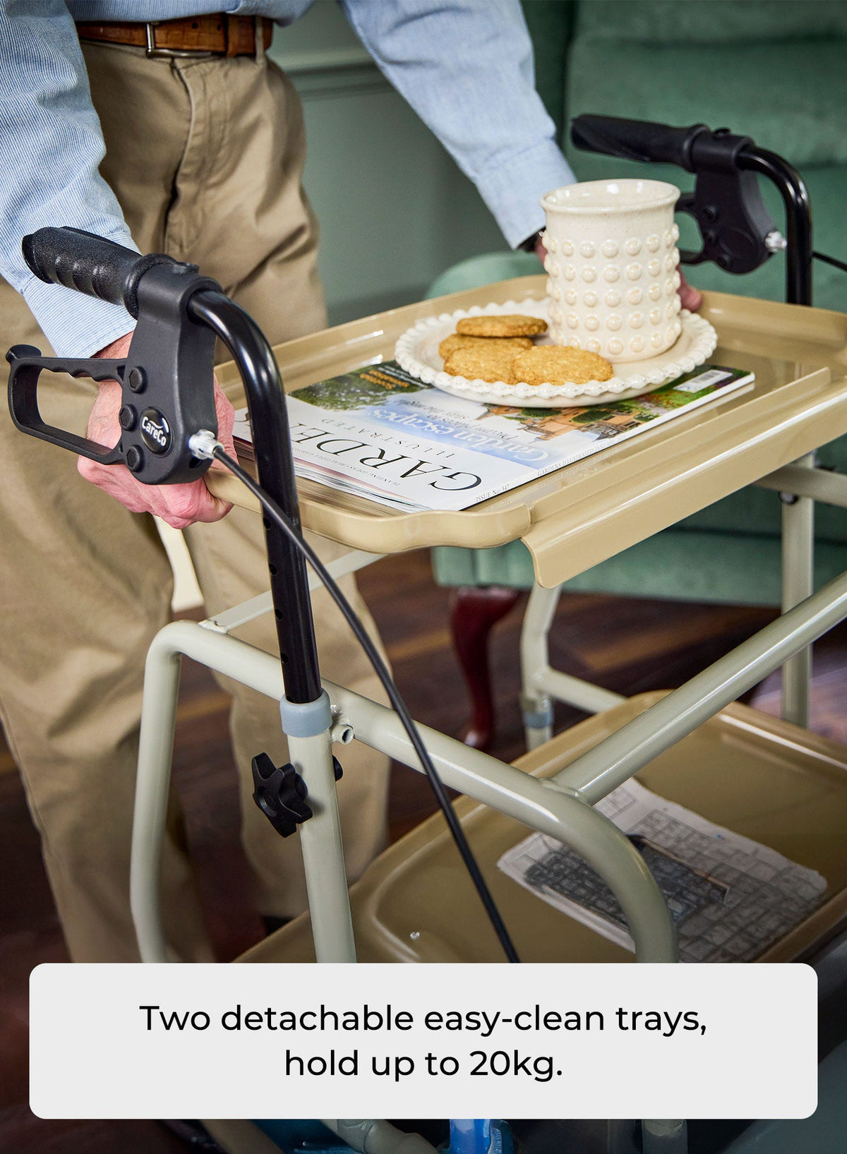 The Handi Trolley is your trusty helper that makes everyday tasks feel a little less like hard work. Its two sturdy, detachable trays are perfect for carrying your bits and bobs, while the lightweight, height-adjustable frame fits around you. Lockable brakes offer extra security when leaning or coming to a stop, and the smooth castors let you move from room to room easily. It's a simple way to stay steady, keep going, and bring the biscuits with you.