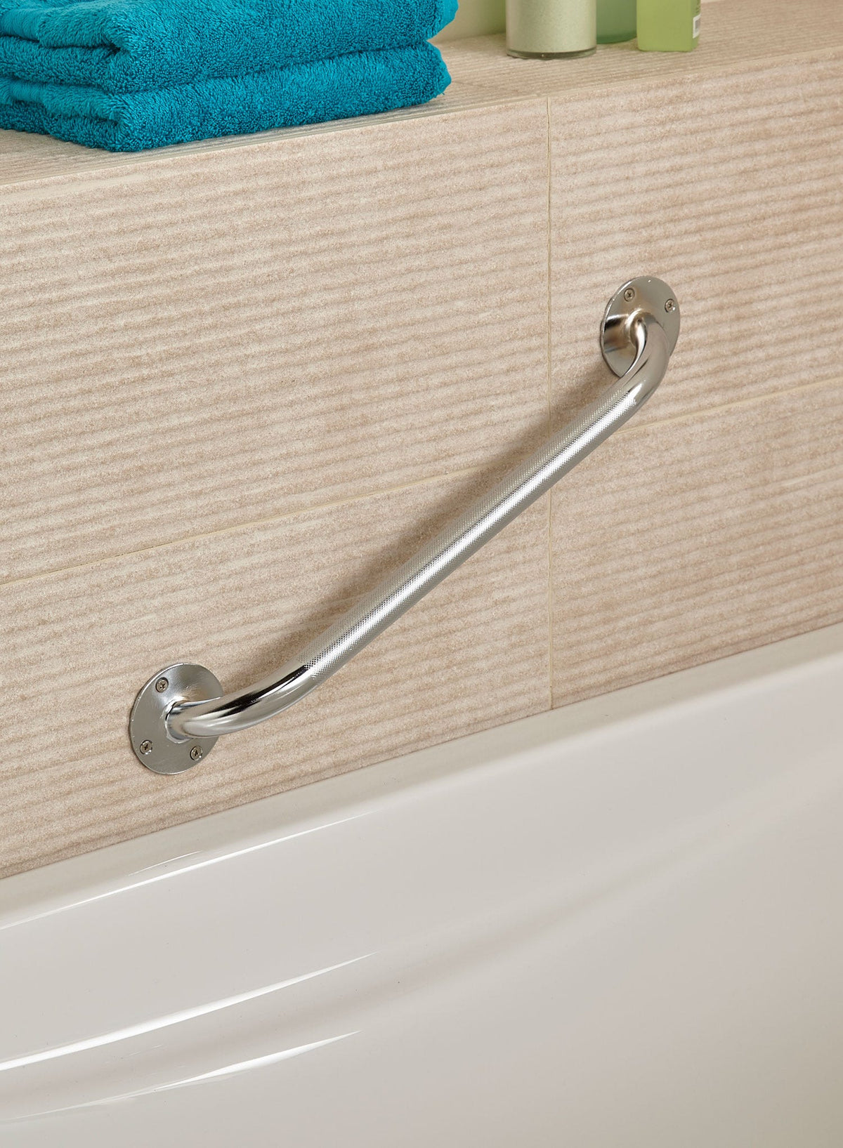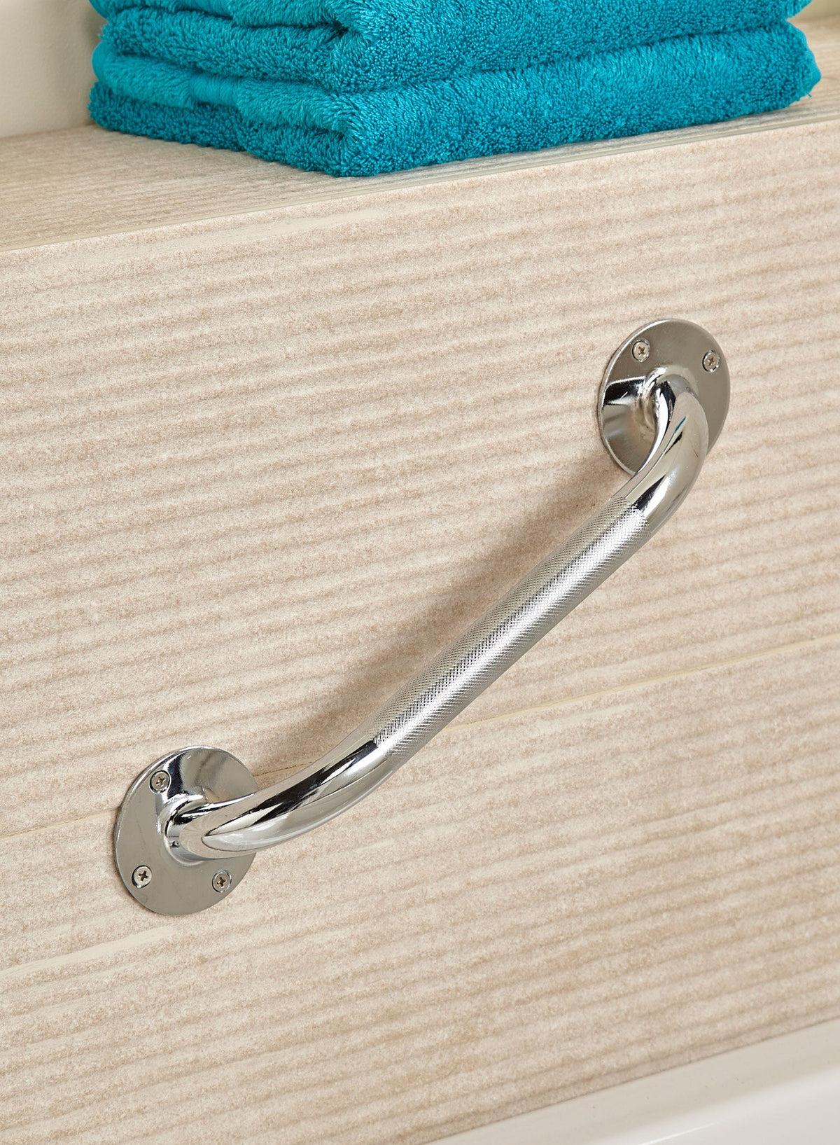 Constructed from steel tubing and finished in durable chrome plating, it looks smart while offering a robust handhold. The textured surface improves grip, even when your hands are wet or soapy.