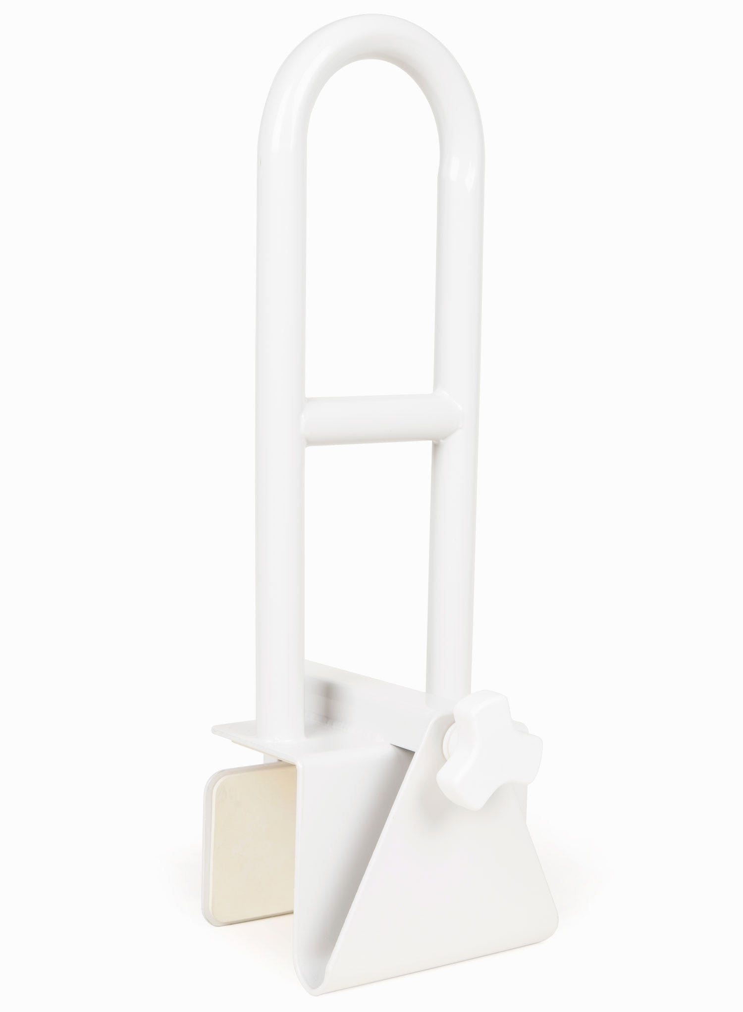 The rail fixes securely to the side of the bath using a robust clamp, while rubber padding protects the bath surface from marks. The simple mechanism makes it easy to attach and remove, which is especially useful in shared bathrooms.