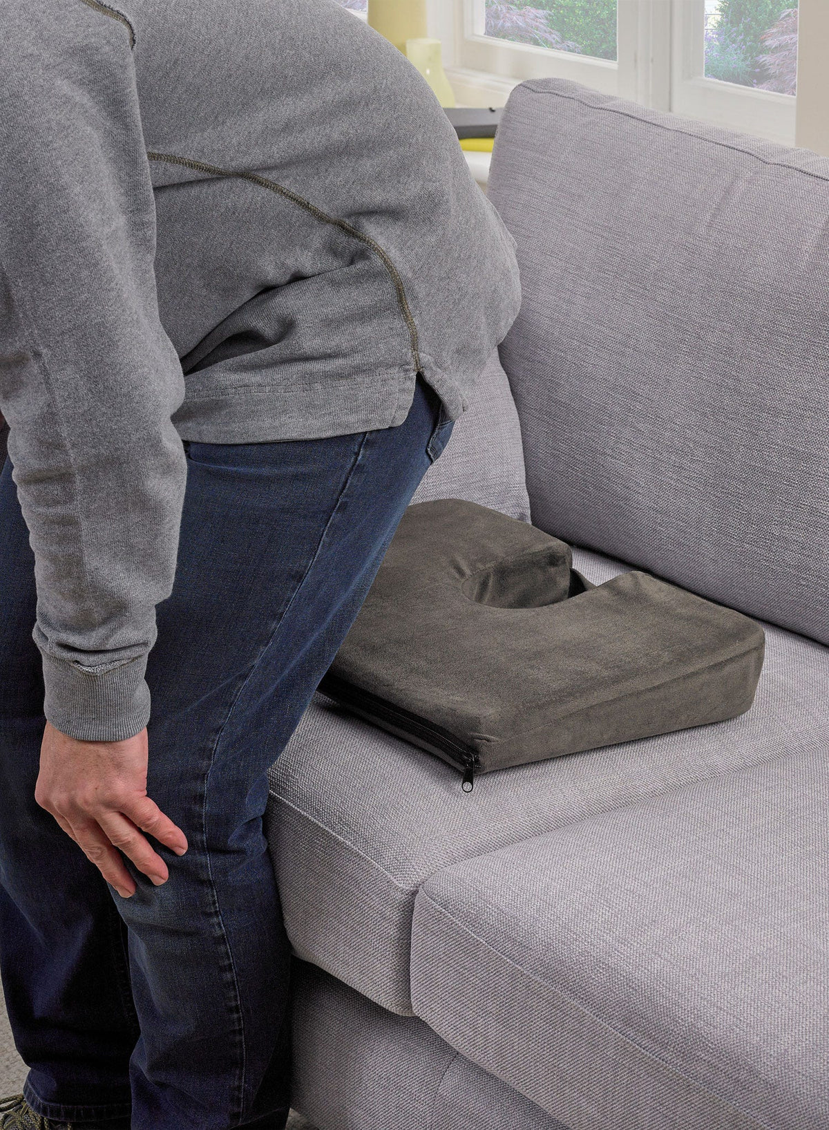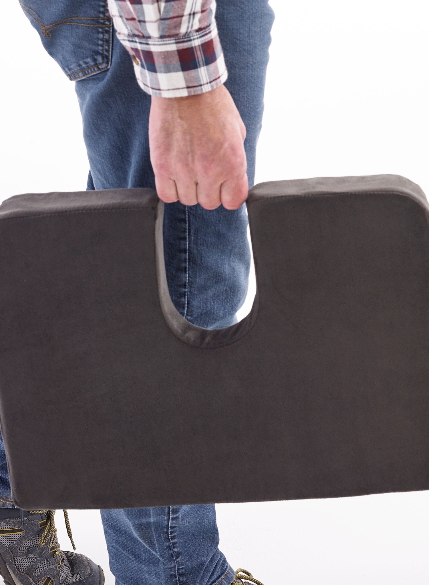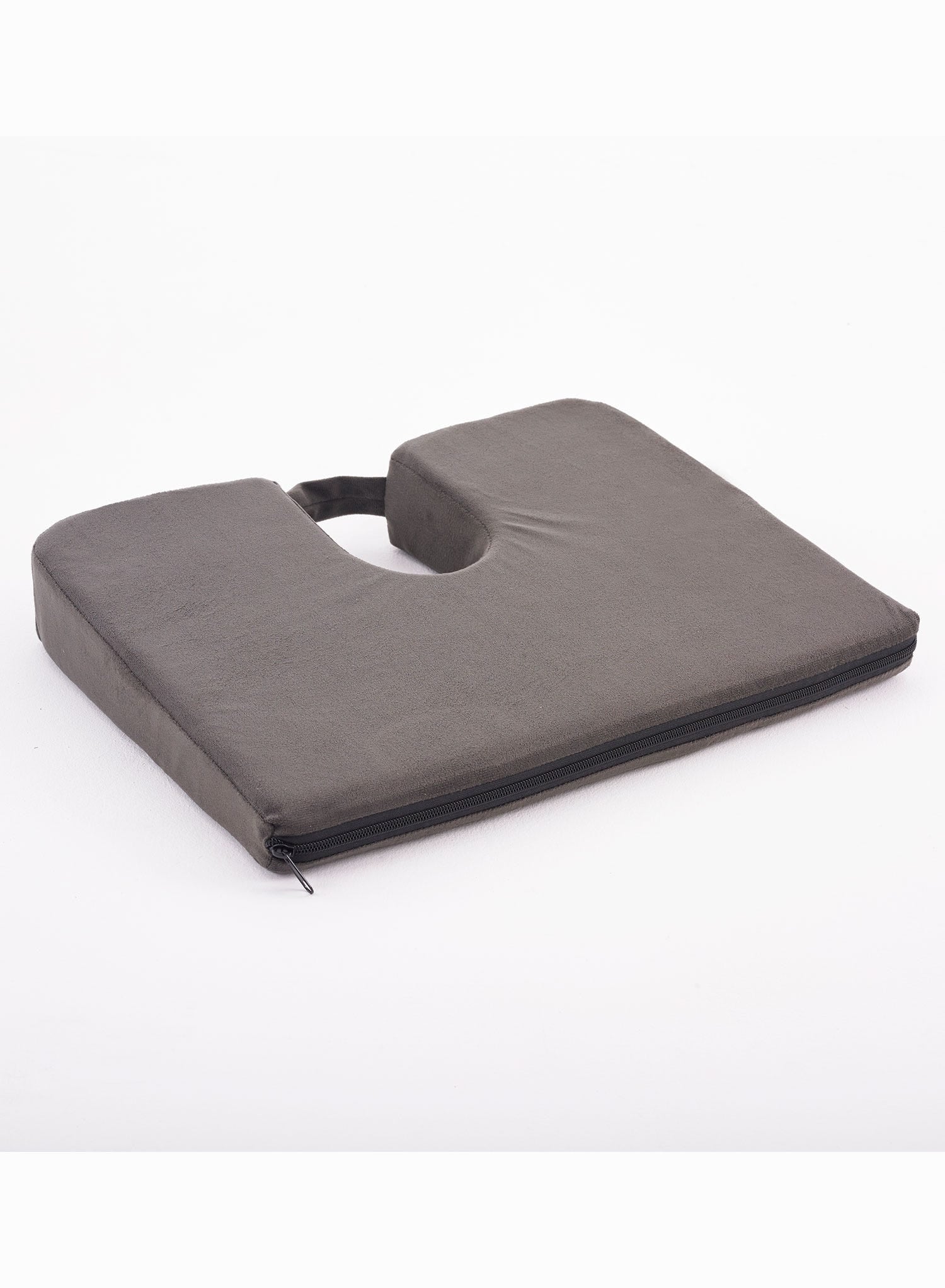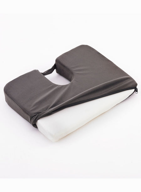 If your lower back aching after sitting down for long periods, it could be because there is too much pressure on your lower spinal discs and tailbone (Coccyx). This fully portable, uniquely designed cushion can help relieve that pressure and may help to prevent back pain by suspending your coccyx over the cut out section. The special wedge shape tilts your pelvis forward to restore the natural curve of your backbone. Made from hardwearing and comfortable polyurethane foam, the cushion has a removable zip-up cover and a convenient carry handle. Machine washable.