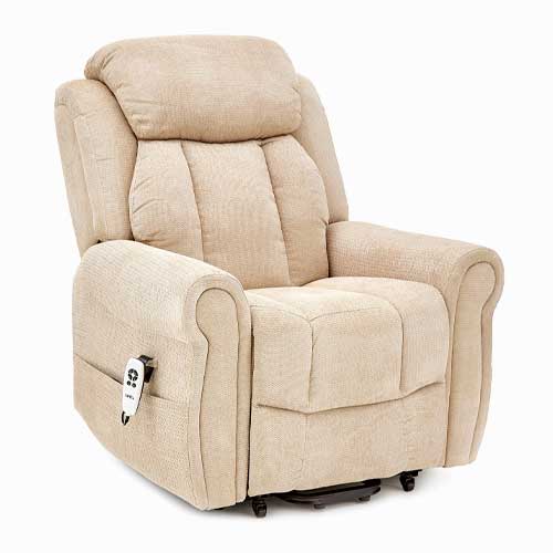 The Cromwell Electric Riser Recliner is a cosy lift chair with soothing heat and massage built in, designed to ease everyday aches and help you relax in comfort.