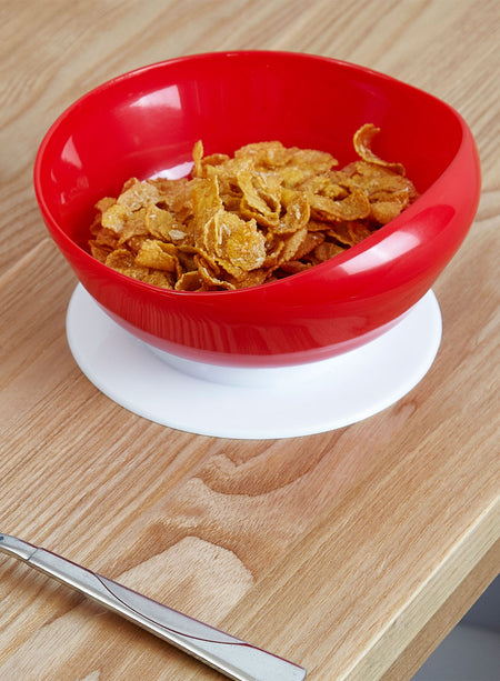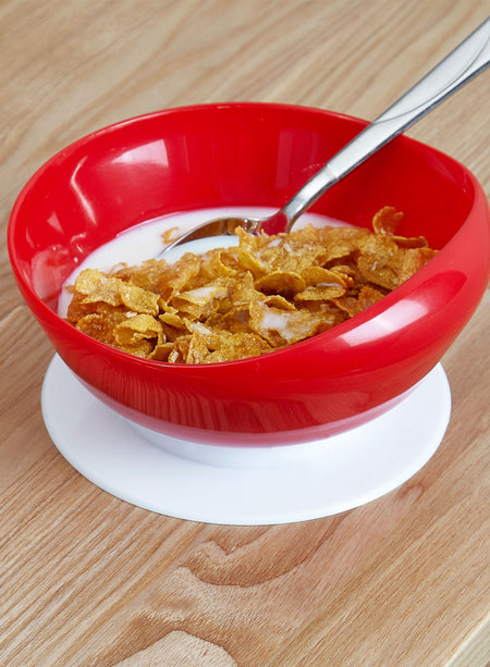 The rim helps you hold on to the bowl and scoop your food, giving you a lot more control as you eat. The suction cup on the base secures the plate to the table for extra peace of mind.