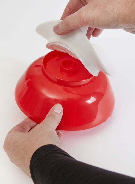 The Dignity Bowl, with deep sides and a wide rim, makes mealtimes much easier for those living with arthritis or weak grip in the hands and fingers.