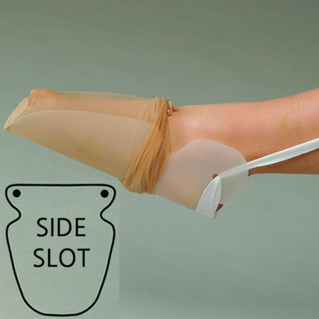 The side slots on this version of the stocking aid are there to hold the stocking more firmly in place. The Dorking Stocking Aid is especially useful if bending and reaching to the foot is difficult. It consists of a strong, shaped, flexible plastic gutter with long cotton tapes attached to the top. The stocking is fed on to the plastic and held in place with the side notches. The foot is put in the open end of the stocking, which is then pulled over the foot and up the leg using the tapes.