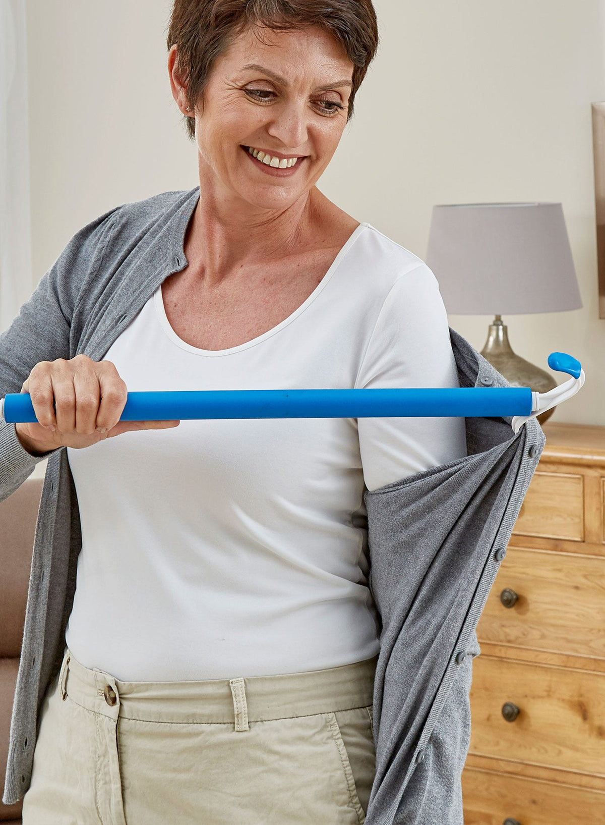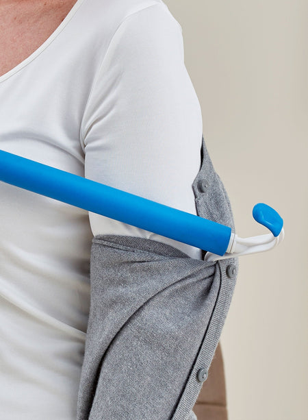 Limited mobility in the arms and shoulders can make it awkward to carry out some everyday tasks, like comfortably getting dressed. This Dressing Stick with Padded Shoe Horn is a handy daily living tool, designed to minimise arm movement, stretching and bending when putting on and taking off clothes and shoes.