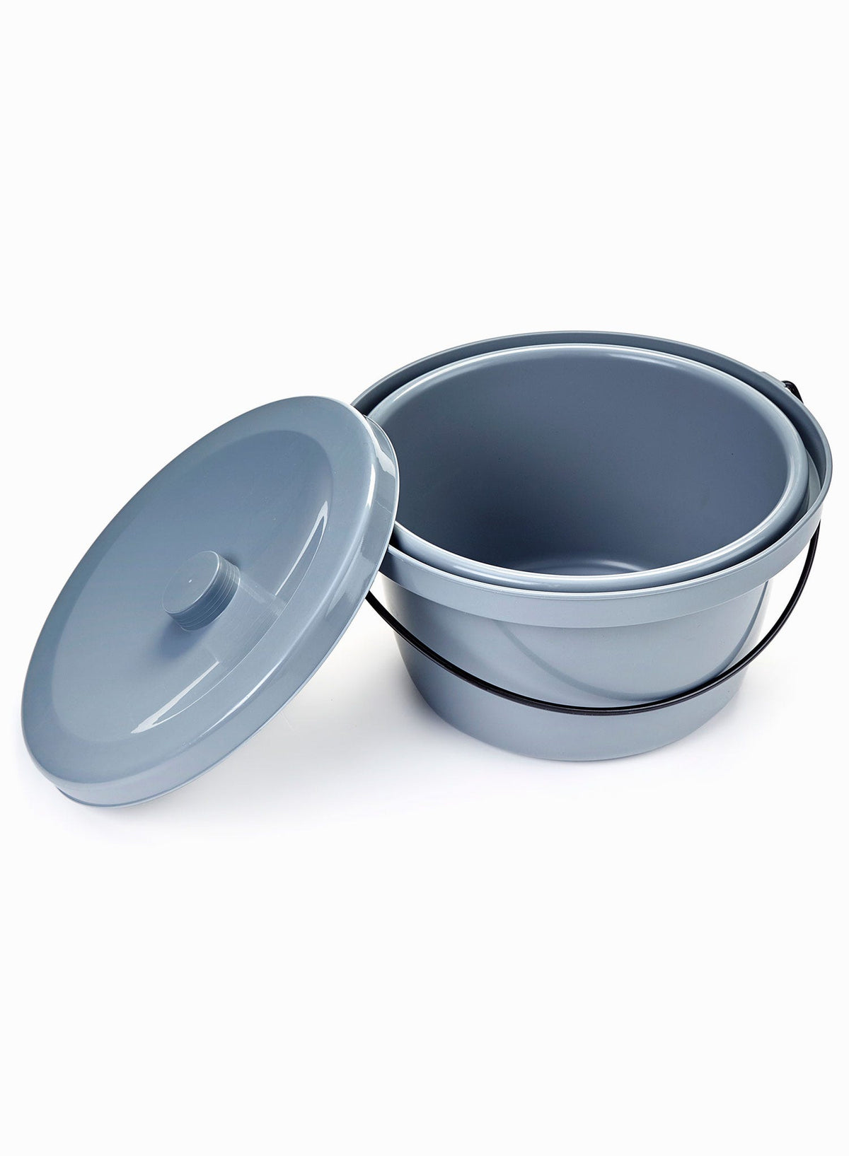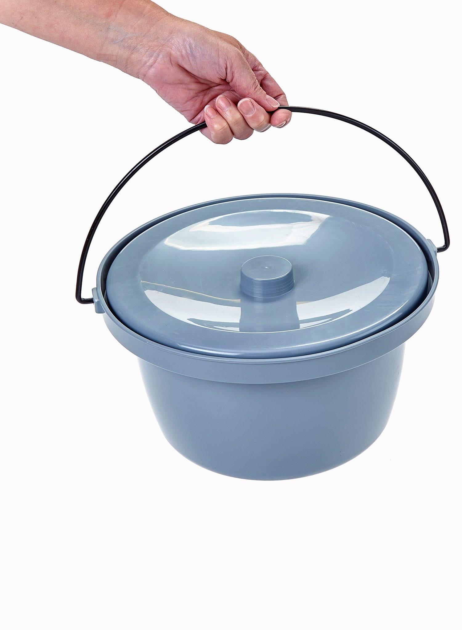 The securely fitting lid can be removed without touching the rim of the pan, helping to maintain good hygiene. A strong metal carry handle makes it easier to transport the pan and reduces the risk of spills during emptying.