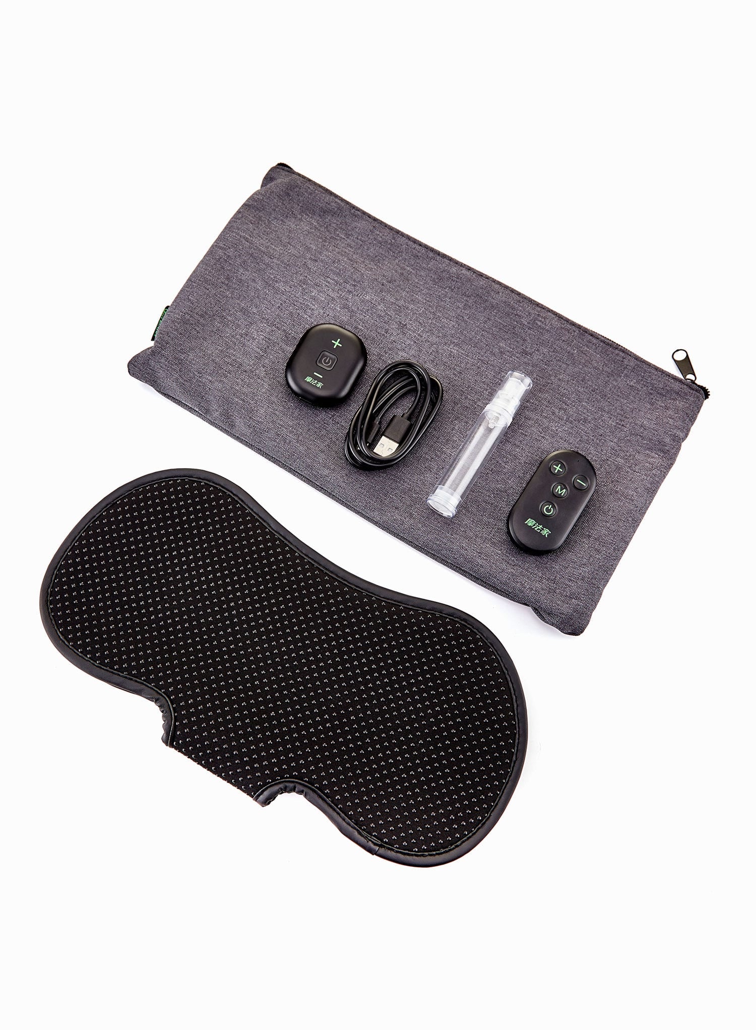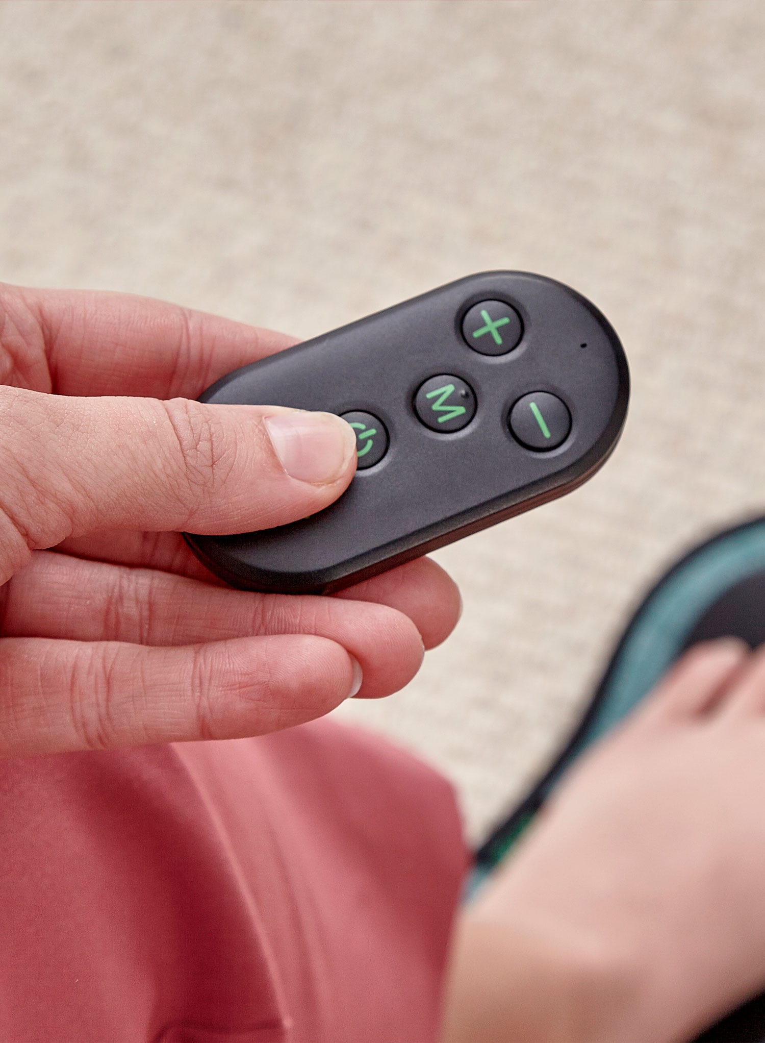 Cycle through 15 intensity levels using the + or - buttons on the machine. The 'M' button cycles through the 4 available massage modes: Training mode, Caring mode, Knocking mode and Kneading mode. Just keep an eye out for the green indicator, which lets you know if the massager has lost contact with your skin.