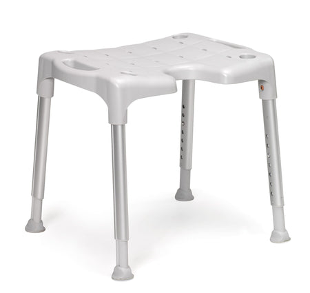 The Etac Swift Shower Stool is made from a combination of high quality plastic and aluminium which makes it both lightweight and strong, but with a small degree of flexibility built into the frame of the stool. This flexibility gives the stool a much more stable and safer feel, as it can adapt to both uneven floors and changes in your weight distribution when you change position on the stool.