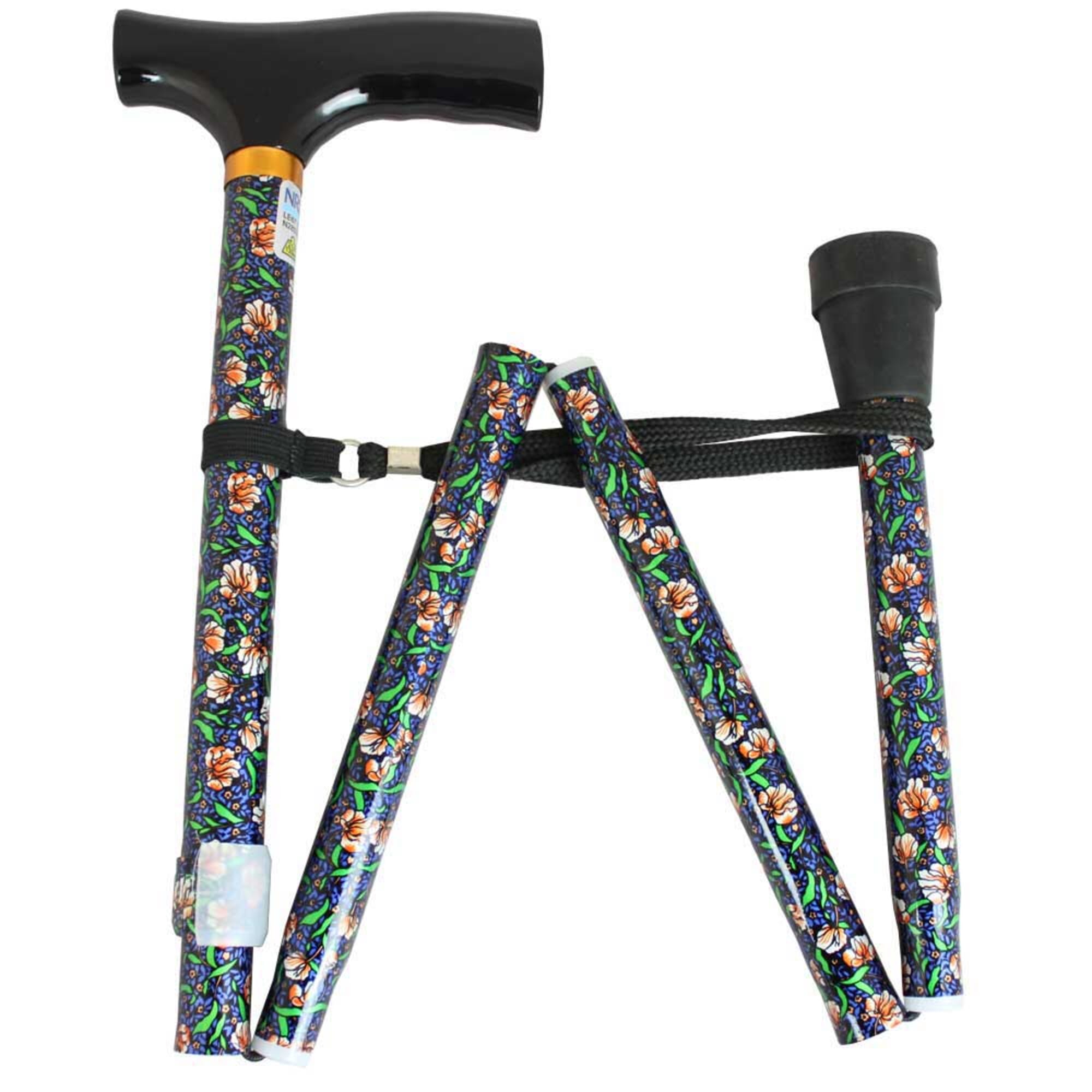 With an easy to grip wooden handle, this Black Floral Folding Walking Stick has a lightweight aluminium shaft that folds into four sections for ease of storage.