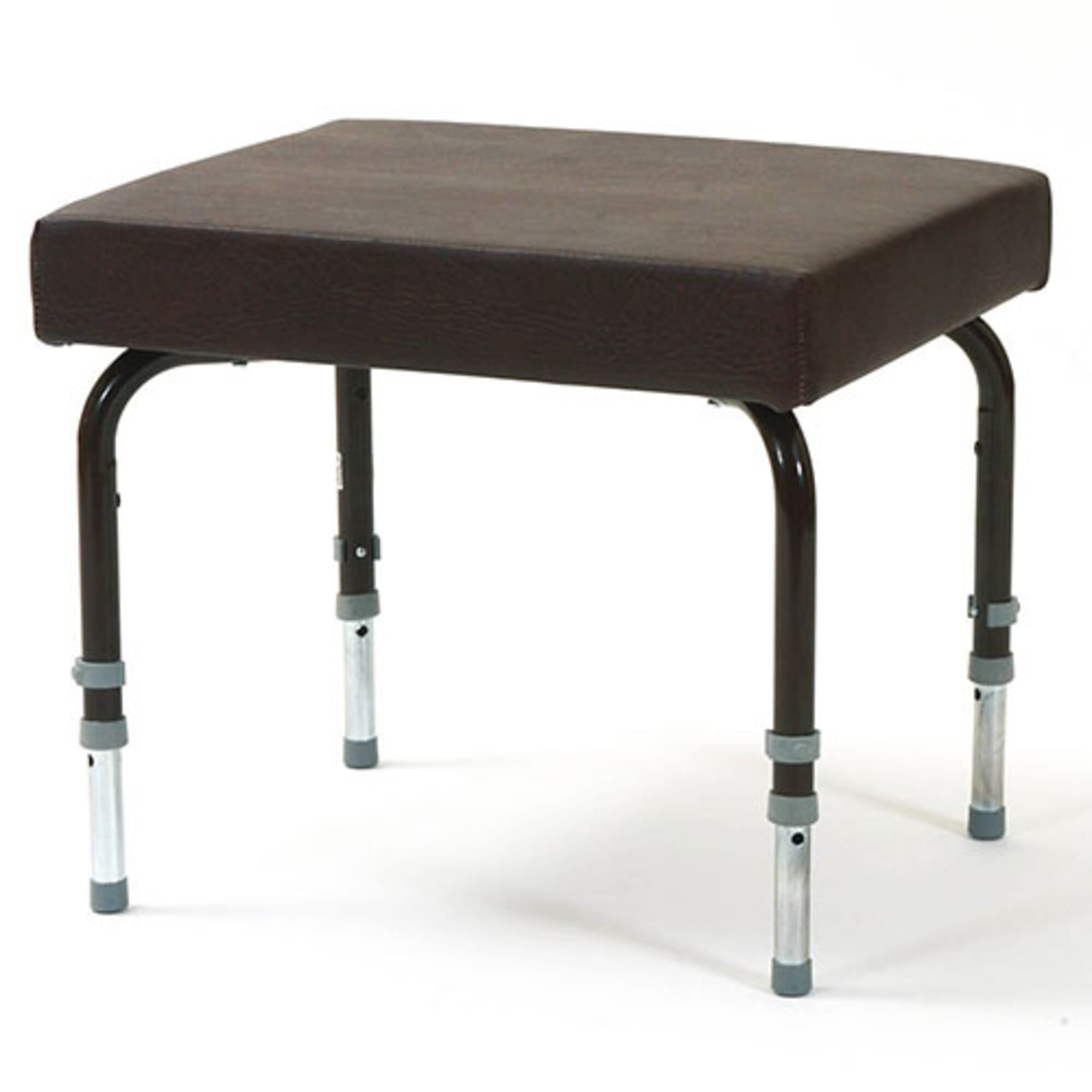 This pedestal has four height adjustable legs which can be altered with the easy to use "e type" pin clips. They are finished in a stylish high gloss nylon durable powder coating. The stool will stay put as non-marking rubber tips are fixed to the bottom of the legs to ensure it doesn't move around when the user's feet are resting on it. The cushion top is made from high density deep foam for absolute comfort and is upholstered in an easy clean cover. A smaller version of the Footstool is also available from this section of the website.