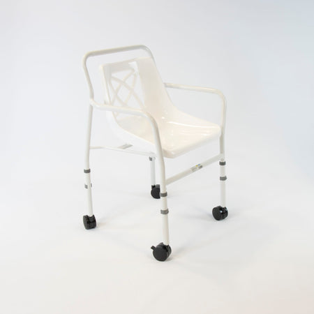 Giving you outstanding value for money, this Height Adjustable Economy Mobile Shower Chair is strong and comfortable with sturdy armrests and an ergonomically shaped seat that has holes for rapid drainage.