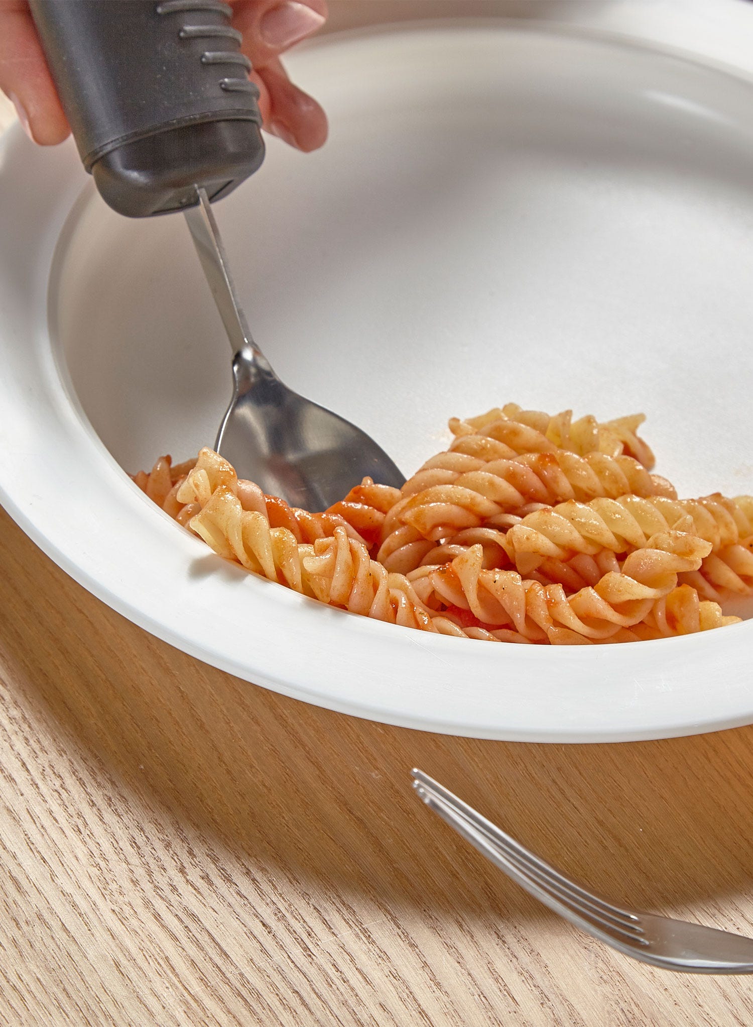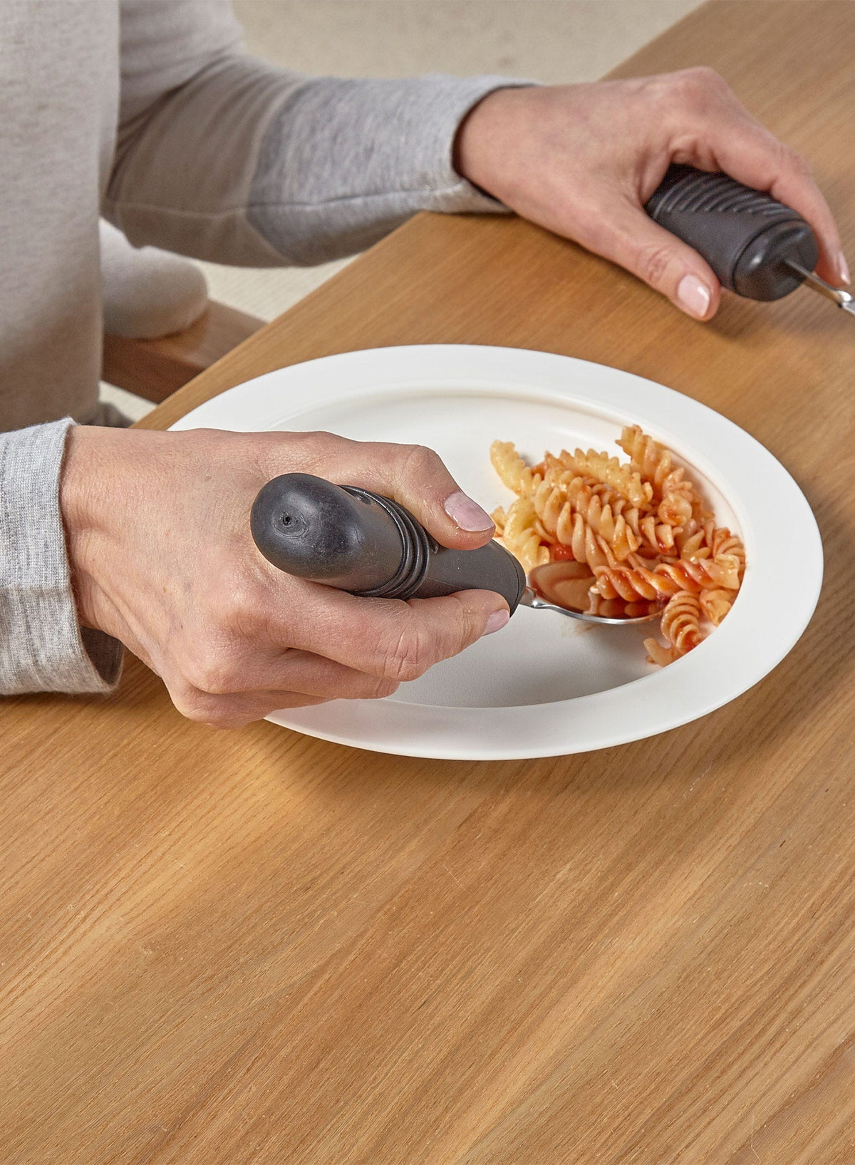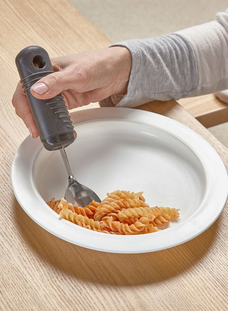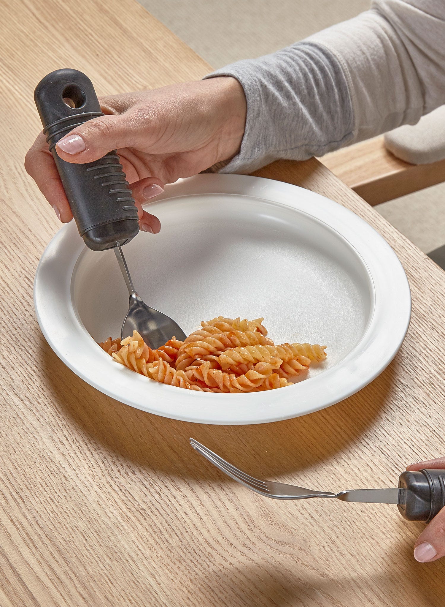 The clever design of this plate makes eating with one hand much easier. The high rim pushes food onto your fork or spoon without any spillages.