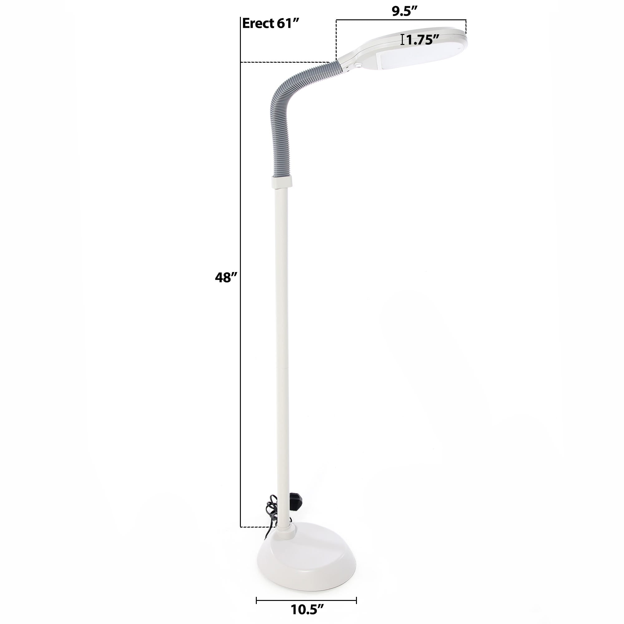 The LED Floor Lamp's flexible arm gives you full control over the direction and height of the light, so you can get as much or as little direct light as you need. The wide stable base lets you set this lamp up wherever you need it: leaning over your riser recliner, at the side of your bed or in the corner of a room.