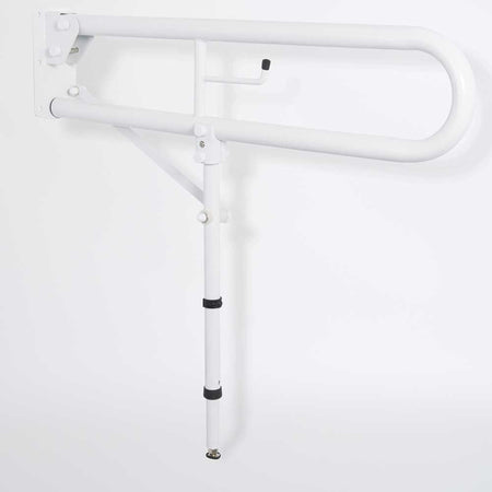 It has a height adjustable folding leg support and a simple lift and lock mechanism that holds the rail upright when not required. This support rail has an integral toilet roll holder for added convenience and an impressive maximum user weight of 200kg (31.5 stone).