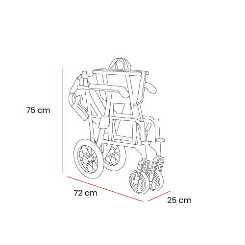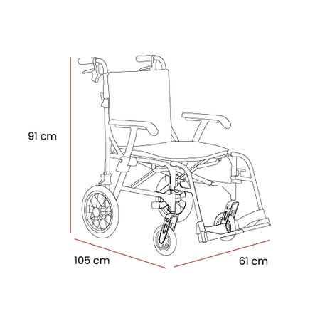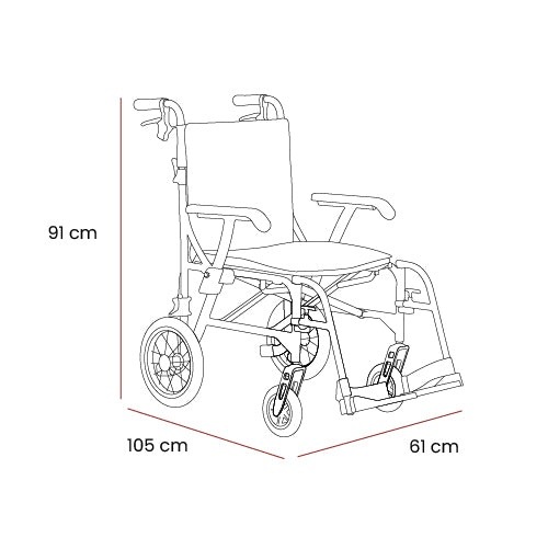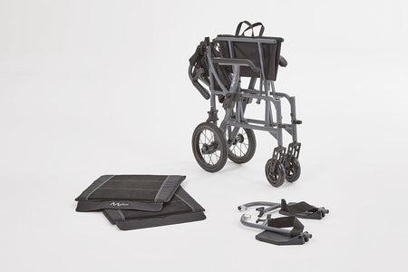 Flip-up armrests allow easy side transfers, while the rear storage pocket and built-in lifting handles make everyday use more convenient. Light, secure and practical, the Magnelite Transit is ideal for those who want smooth mobility with minimal effort.