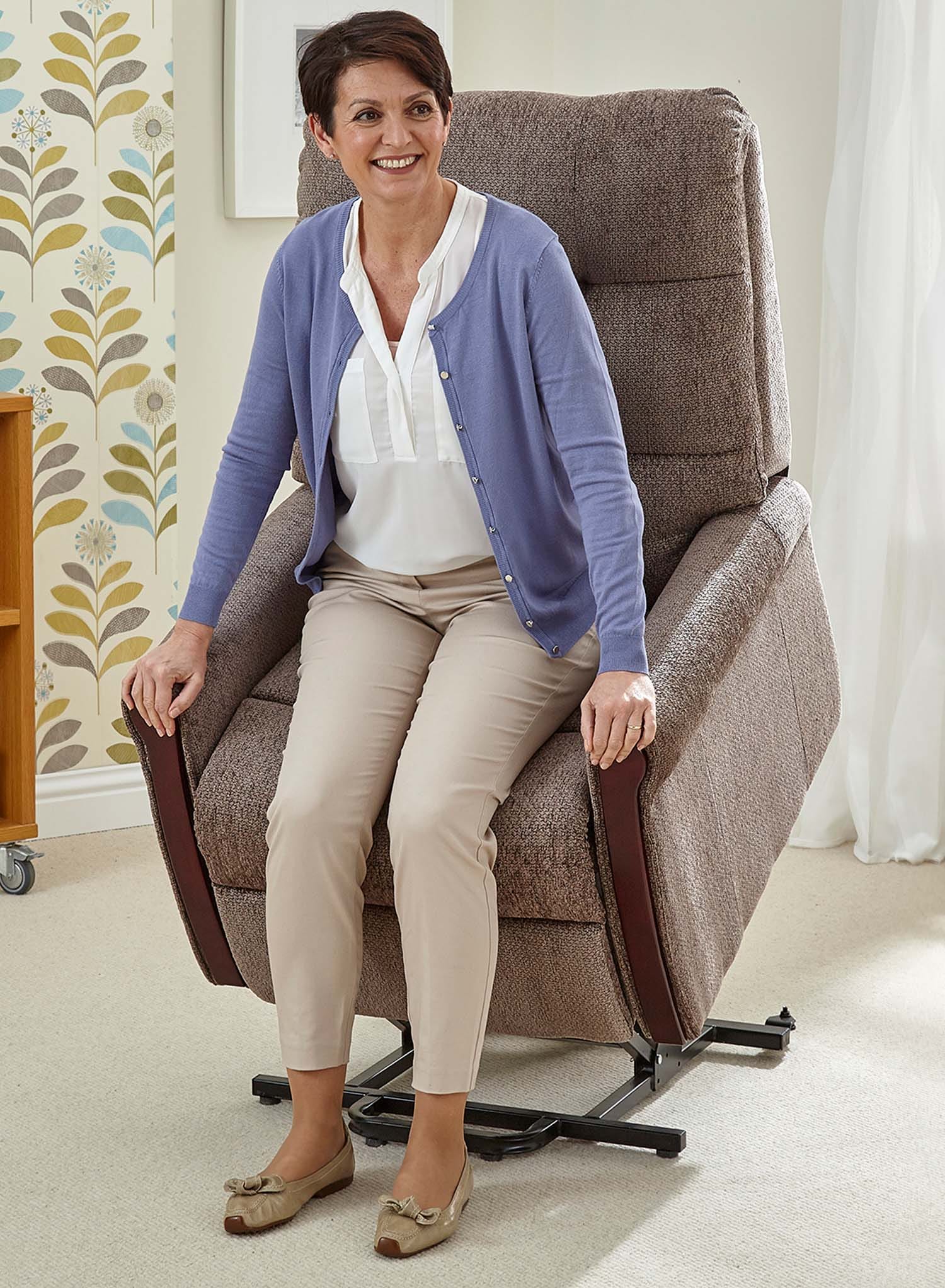 A straightforward six-button handset makes the chair easy to control, including the lift-and-tilt riser function. The gentle motor action raises you smoothly from sitting to standing and lowers you back down again, reducing the effort needed to get in and out of the chair and helping to protect your knees and hips.