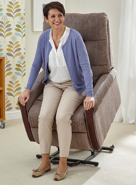 The Maxi Comfort Classic is a dual motor riser recliner that combines traditional styling with practical powered support, giving you a cosy place to sit with extra help when you need it.