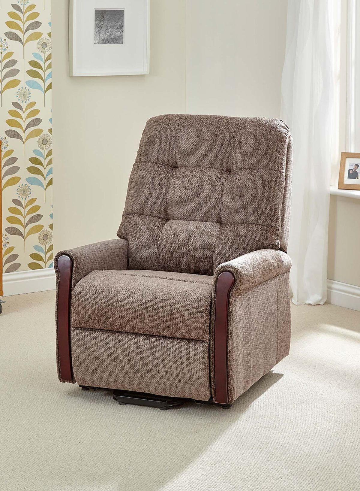 The Maxi Comfort Classic looks as good as it feels. Traditional wood side panels complement the elegant scroll armrests, while the durable fabric upholstery is designed to cope with everyday spills and wear. Elasticated pockets on both sides of the chair provide handy storage for the handset, books, magazines or TV remotes.