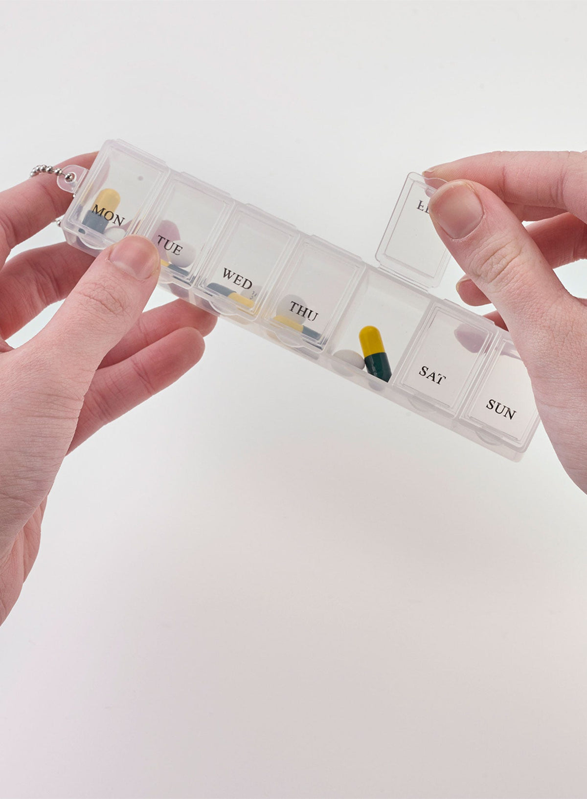 The clear finish of the Pill Organiser makes it easy to see at a glance which tablets are inside the compartments.