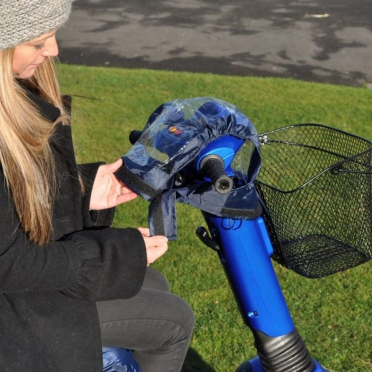 The cover simply wraps around the control panel, with its elasticated edges and hook and loop fastening preventing rain from getting in. This style of fitting also helps it to fit over most scooter control types. The controls are still visible at all times for you to use safely, thanks to the see-through PVC panel.