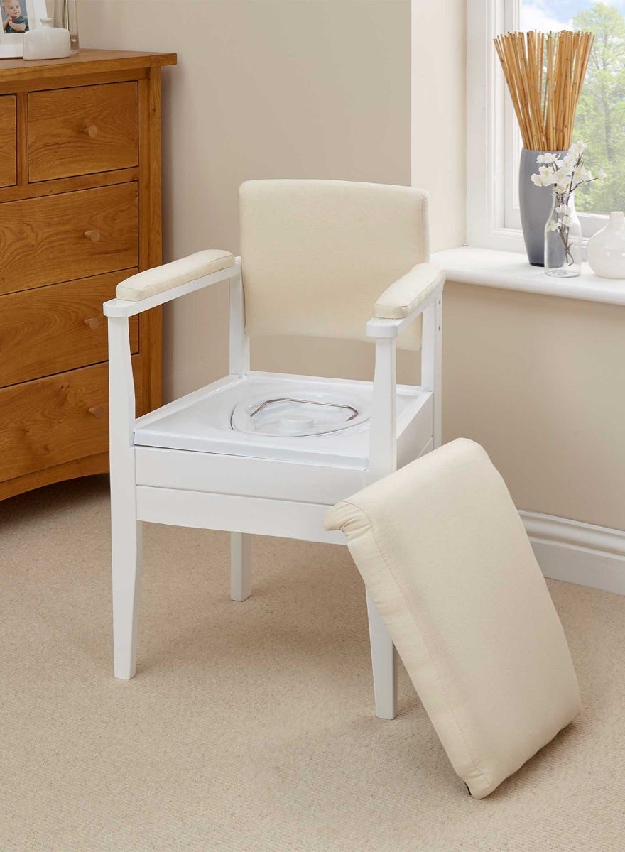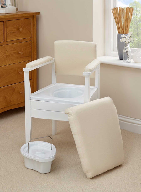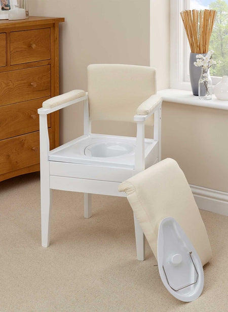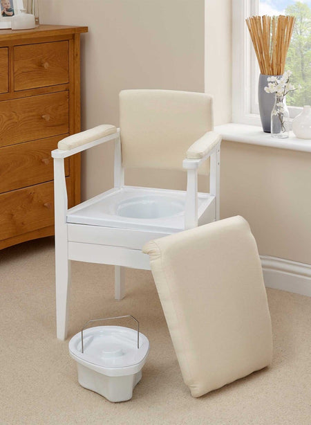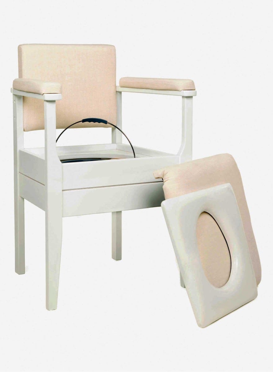 Soft padded armrests and a supportive backrest help you relax in comfort, while the integrated commode pan is easy to access and remove for cleaning. The stylish upholstery is easy to maintain and helps the commode blend in with existing décor.