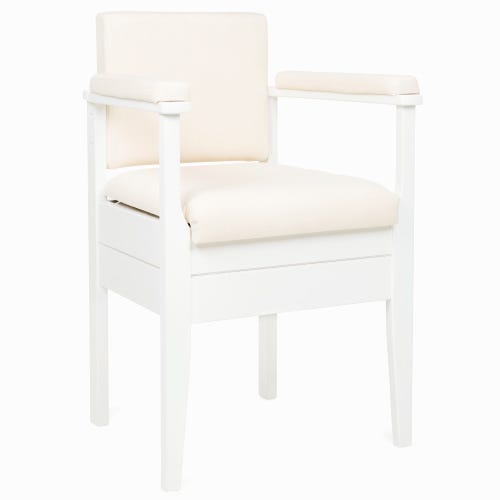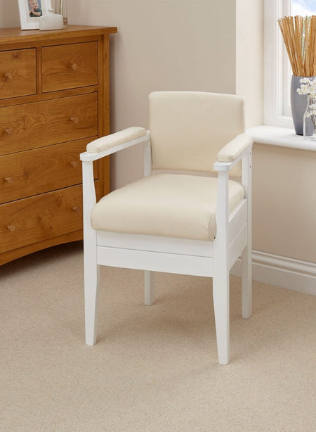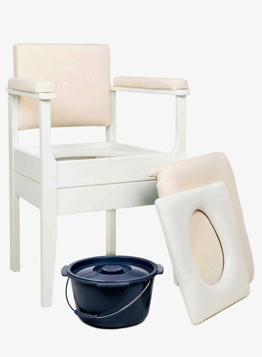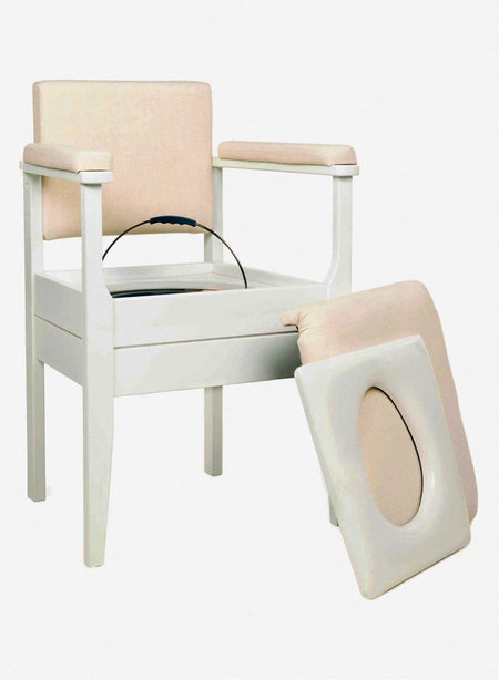 The Strava Commode is designed to look like a smart, modern chair while discreetly offering the practicality of a commode, making it suitable for both domestic and care environments.