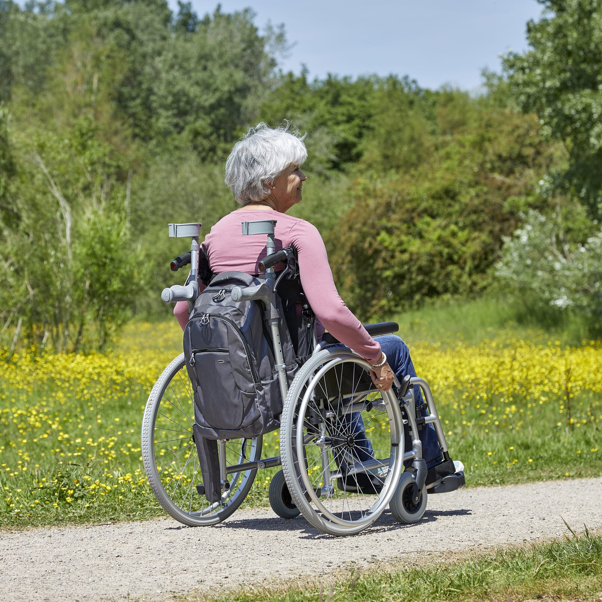 The NRS Freestyle Wheelchair Crutch Bag gives you somewhere to put your belongings when you're out with your wheelchair or mobility scooter, but it also lets you easily carry a cane or crutches with you to provide extra flexibility with your mobility needs.