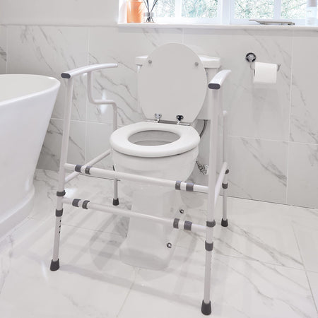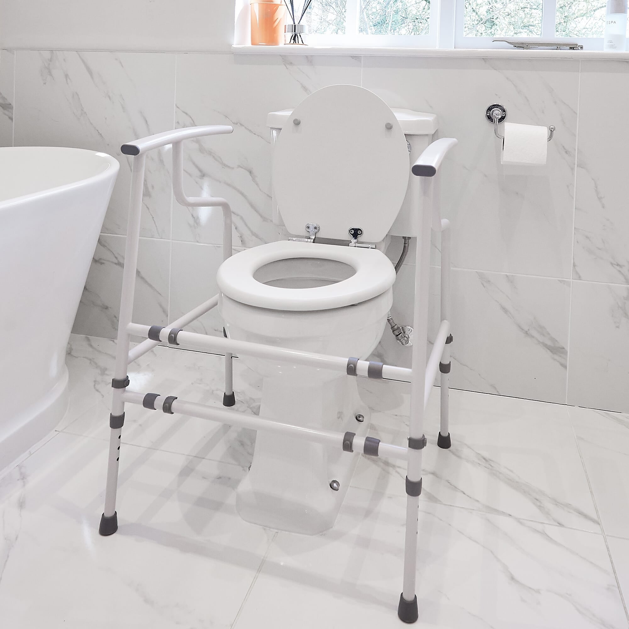 The Nuvo Open Back Toilet Frame has a contemporary design featuring smooth, comfortable armrests and an open back to better help with toileting, where needed.
