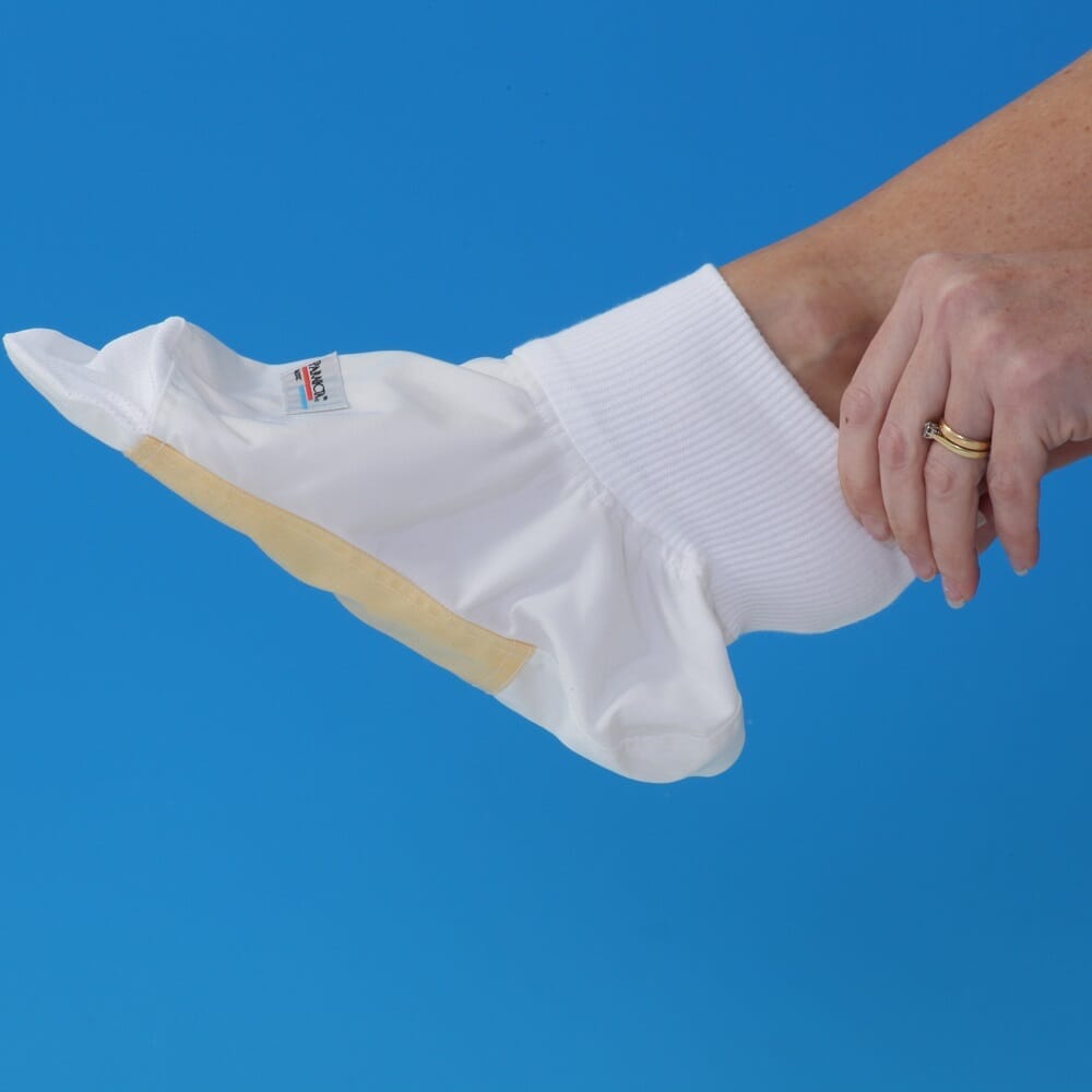 The slip-on bootee can also help stop wound dressings on the foot from being lost due to “rucking-upâ€.