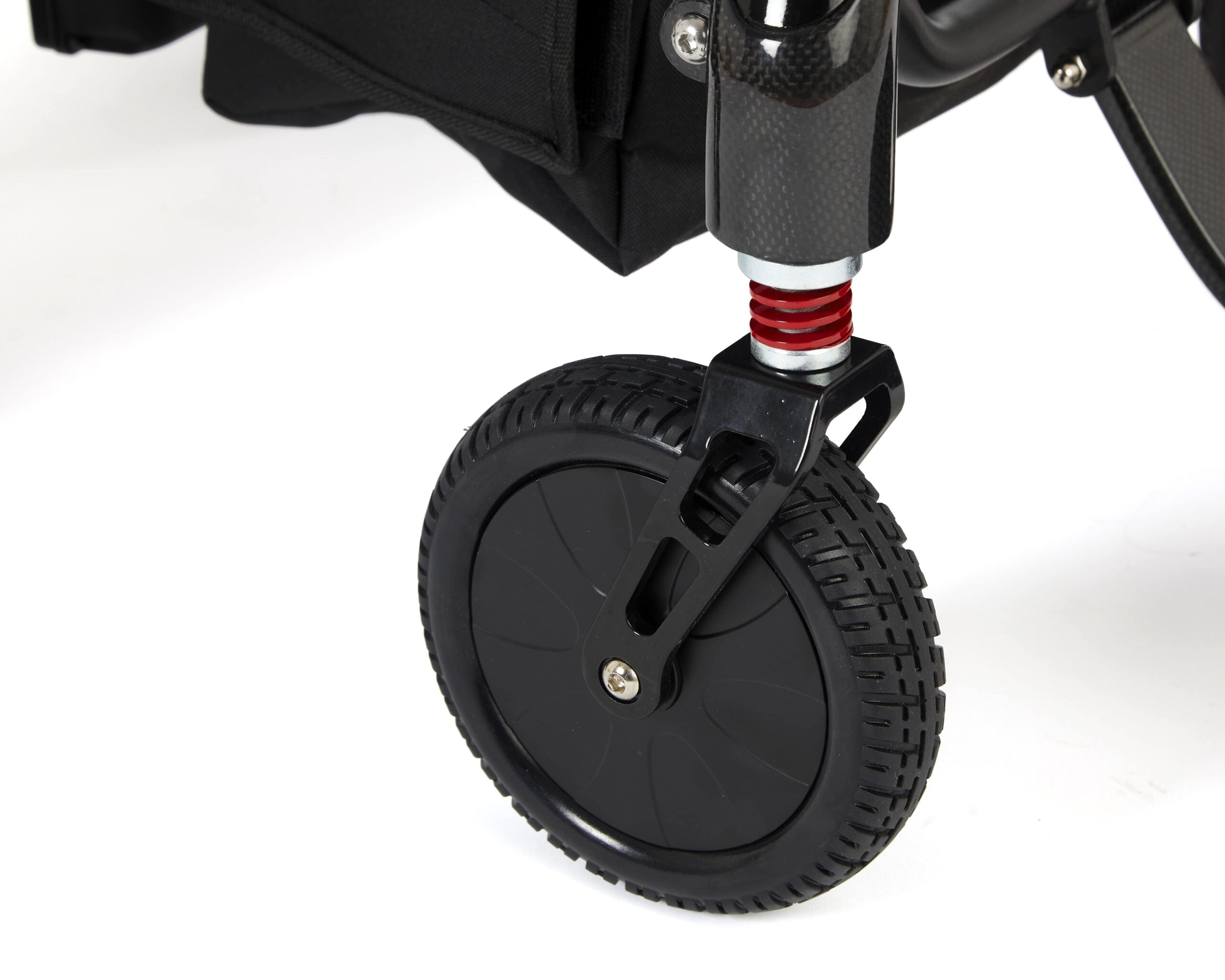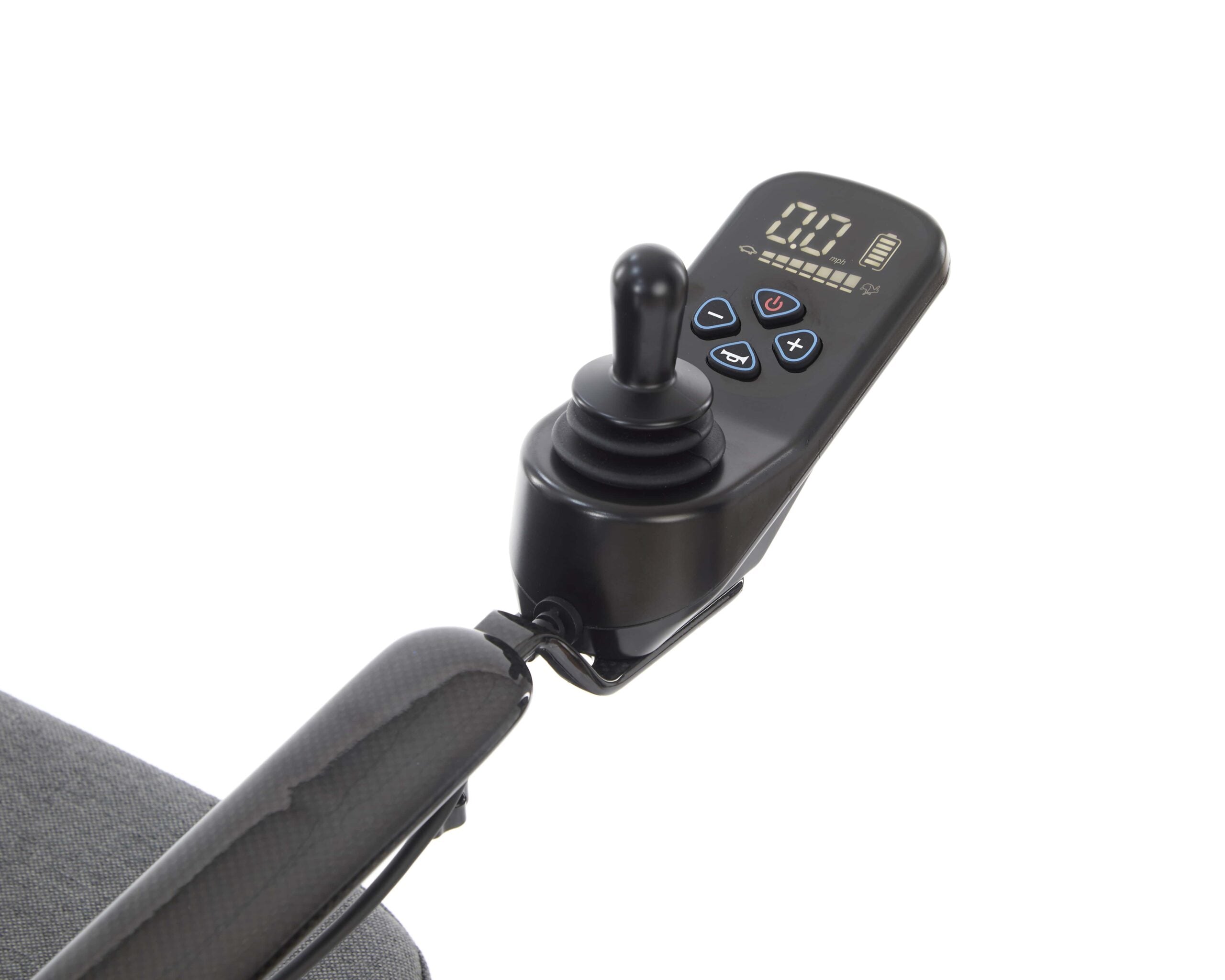 Agile, compact, and incredibly lightweight, this is the ultimate carbon fibre powerchair. Without the battery, it weighs only 17kg. But this doesn’t mean it compromises on strength and durability – it’s suitable for those weighing up to 23.5st.