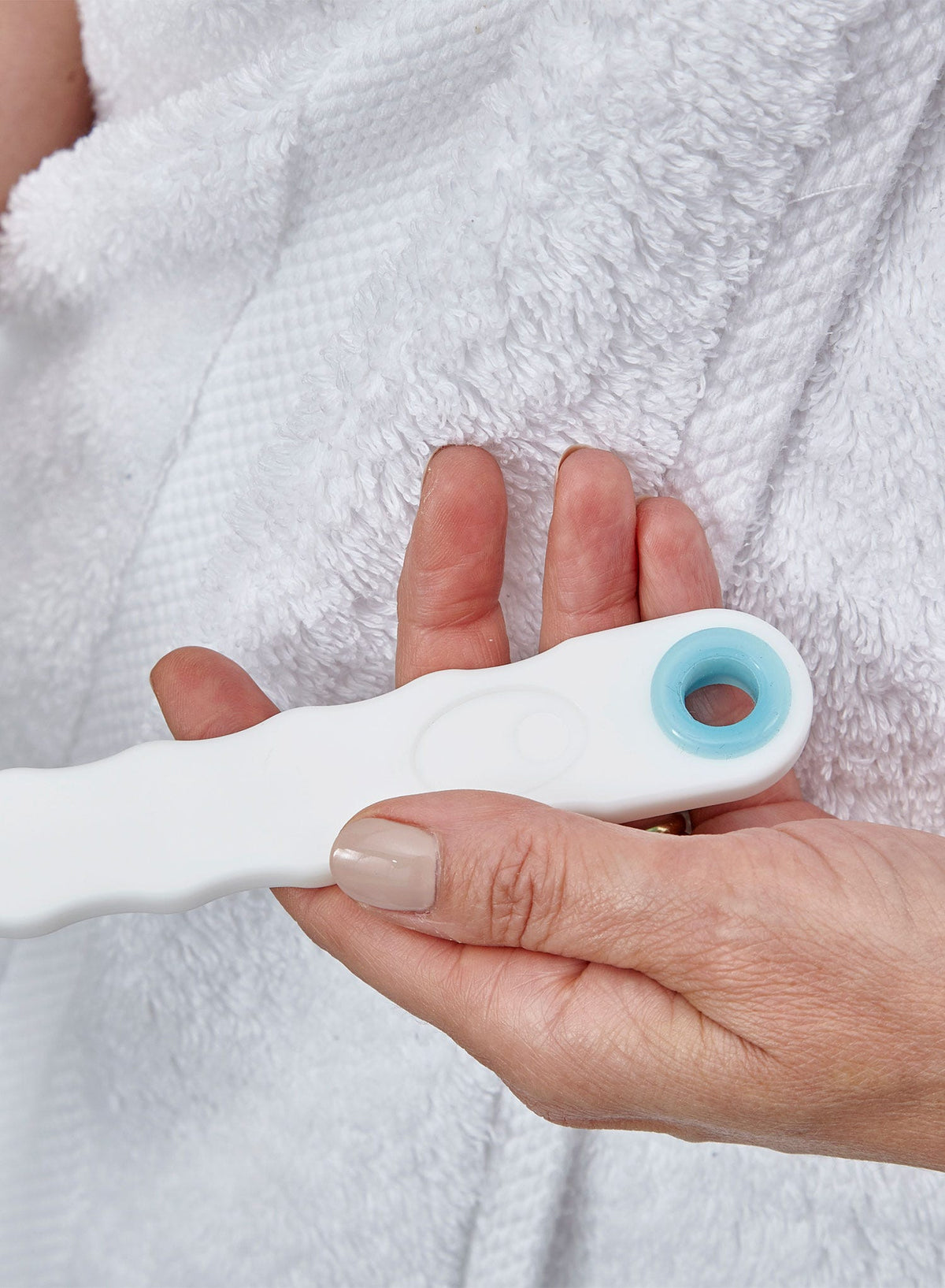 The extended handle reduces the need to reach down to your feet or around to your lower back, while the ergonomic shape is designed to be comfortable to hold, even for those with reduced grip strength or arthritis.
