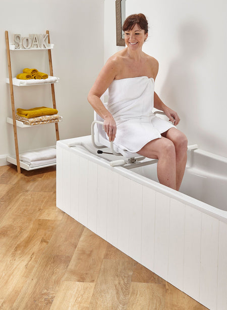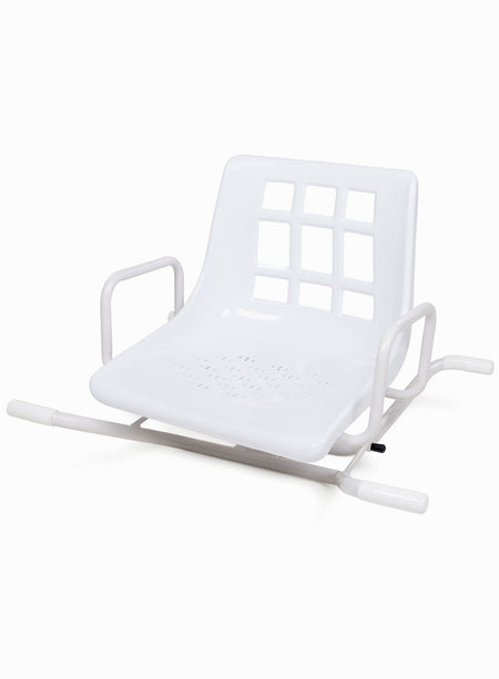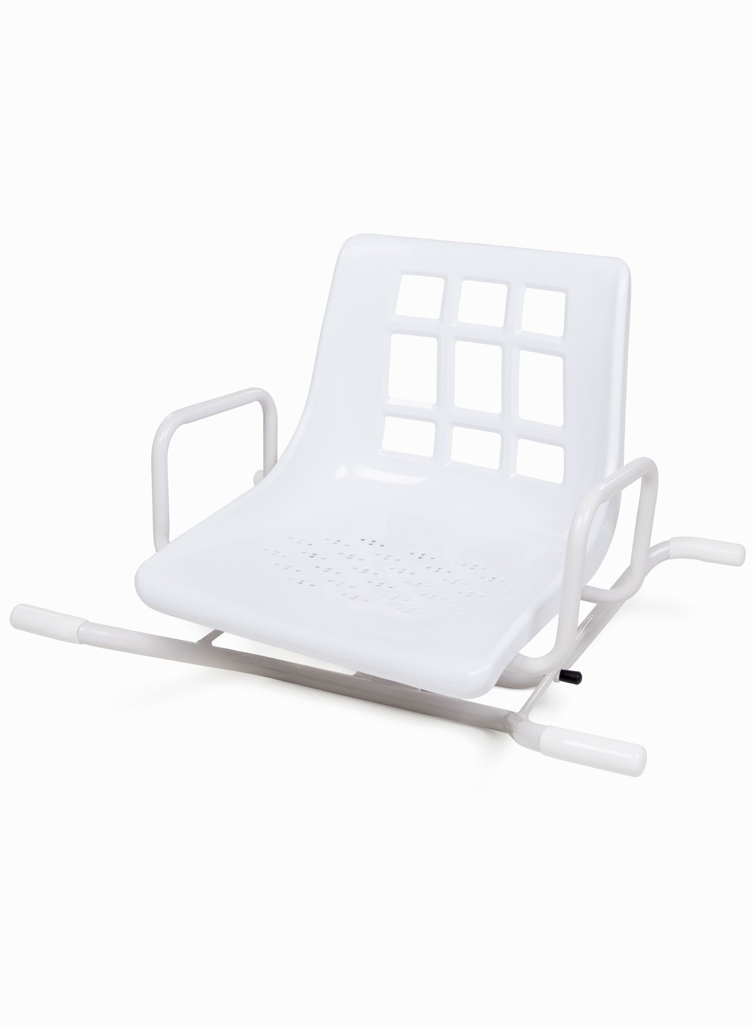 This swivelling bath seat is designed to fit over most standard baths with an internal width of approximately 700–750mm.