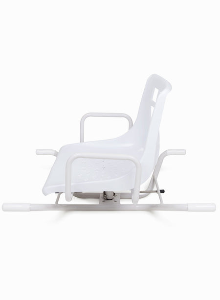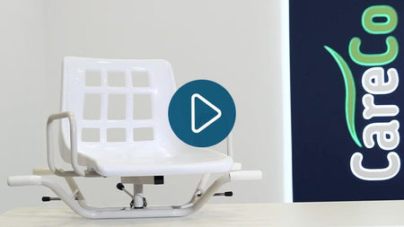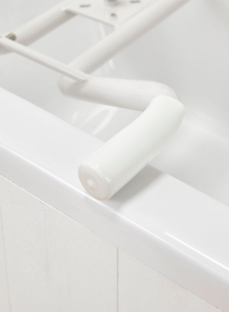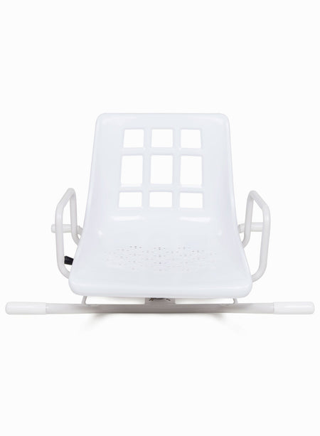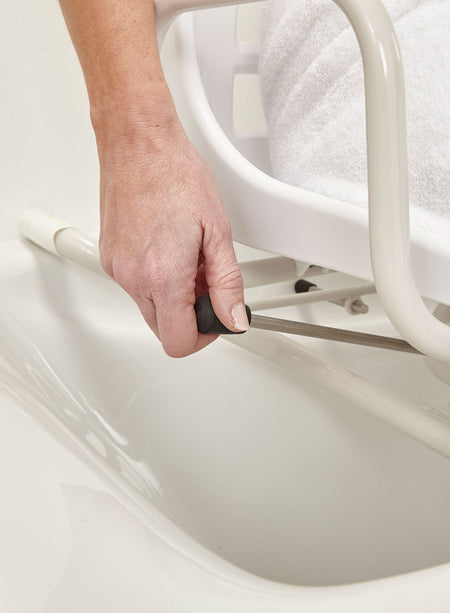 The frame is placed over the bath, and the seat rotates to face outwards so you can sit down safely. Once seated, you can swivel gently into position over the bath instead of climbing in. A simple lever beneath the chair lets you rotate and lock the seat securely where you want it, so it won’t spin away unexpectedly.