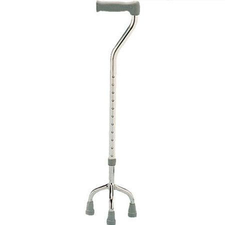 The tripod stick features a chrome-plated steel base with an anodised aluminium neck, giving an excellent combination of strength and durability. The plastic moulded handle provides a secure grip and is centred over the legs to provide maximum stability. This small base tripod walking stick is suitable for left and right-handed users.