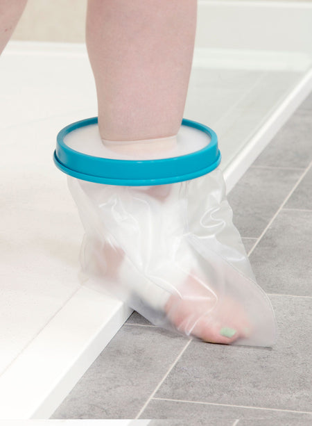 The Stay Dry Foot and Ankle Protector is a waterproof, lightweight cover that helps keep dressings, casts or bandages on your foot and ankle dry while you bathe or shower.