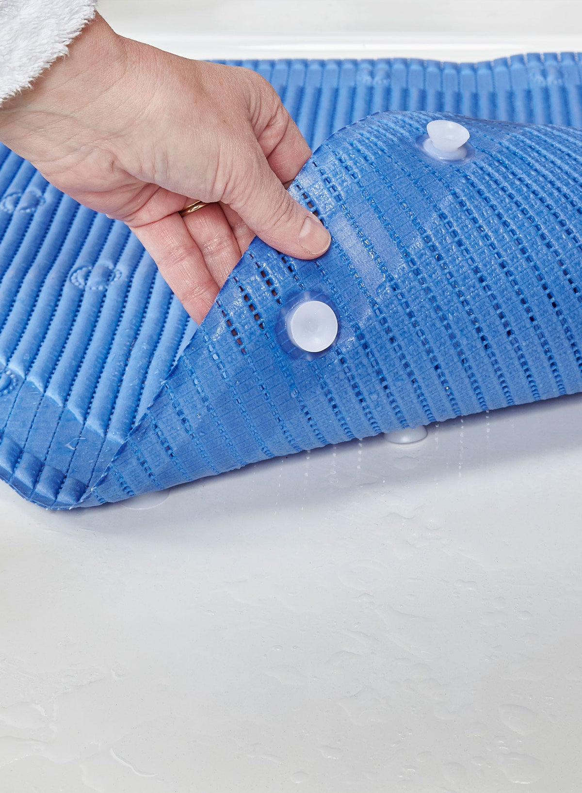 Designed to reduce the risk of slips and falls, it uses a suction-cup underside to grip reliably to wet shower surfaces. The softly padded top surface is pleasant underfoot and helps you feel more confident while showering.