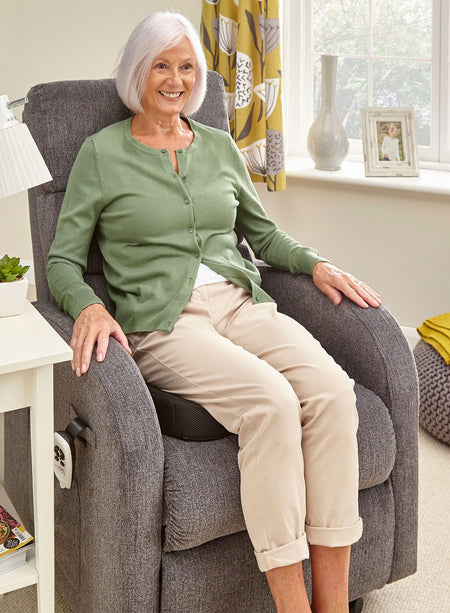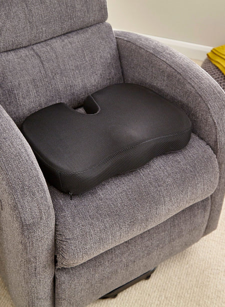 Ideal for use with a riser recliner or your favourite fireside chair, this coccyx cushion can also be used in the car or while at work. The unique design suspends your coccyx over the cut-out section of the cushion, eliminating that painful build up of pressure.