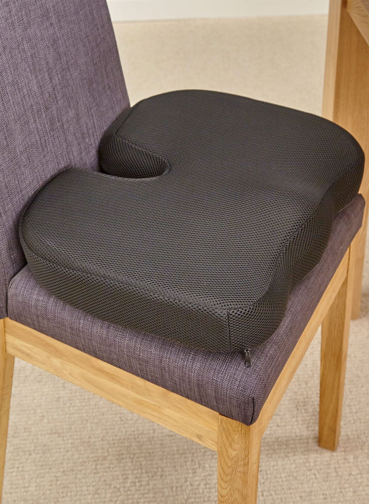 The wedge shape promotes proper sitting posture, tilting your pelvis forward to restore the natural curve of your spine. The U-Comfort Orthopaedic Coccyx Cushion is covered with a breathable fabric and can be machine washed if needed.