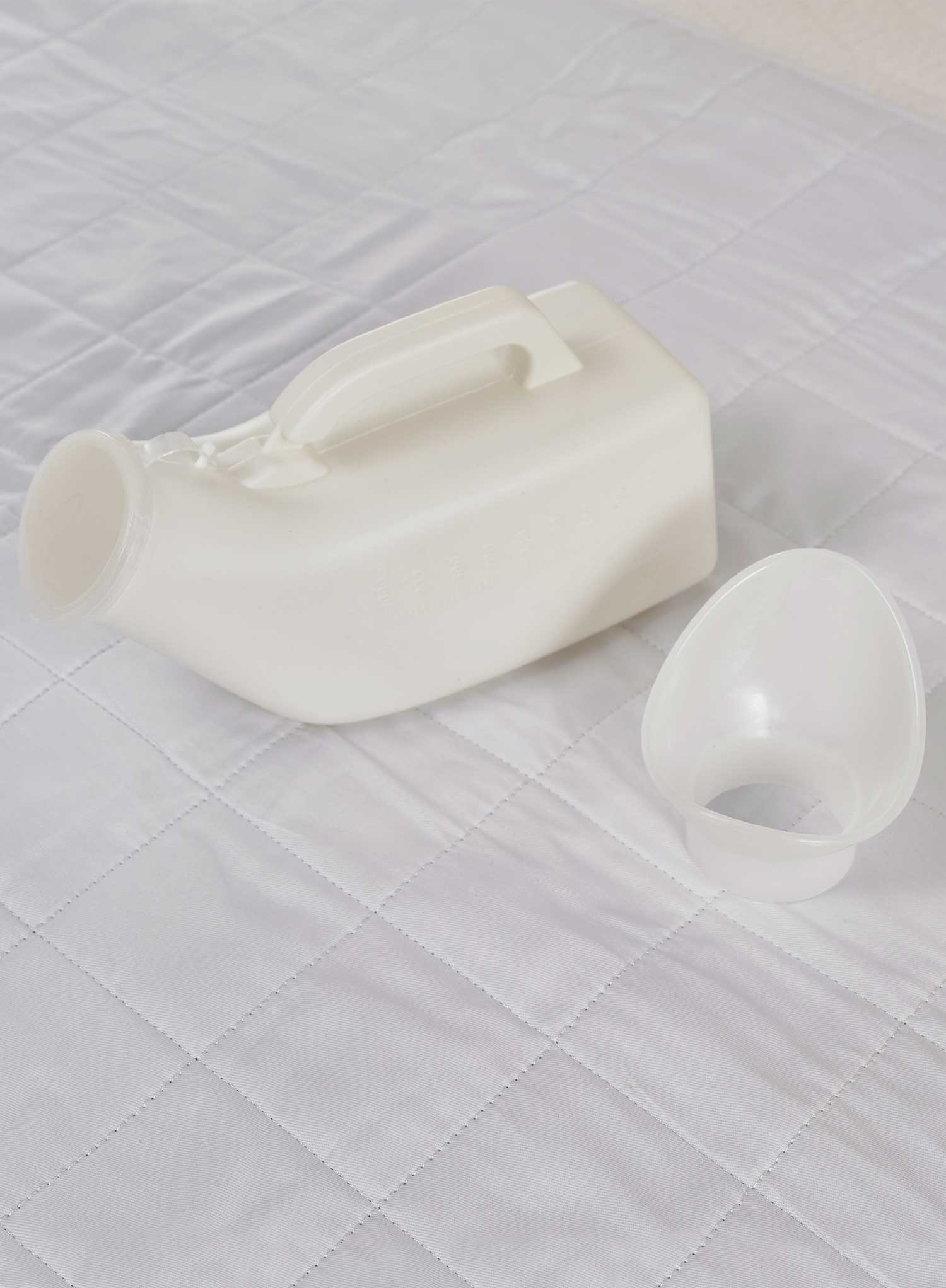 The anatomically shaped design means it can be used while standing, sitting or lying down, so it’s suitable for many different situations and levels of mobility. A longer neck makes it easier for men to use and helps reduce the risk of overflow or splashing, while the simple female adaptor fits into the neck to convert it for comfortable use by women.