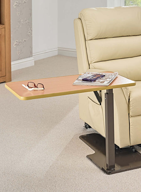 Designed specifically for use with a riser recliner, this table is a sturdy, safe surface for those with limited mobility who want more comfort and independence at home. The universal leg fitting means it can be set up on either the right or left-hand side of the chair, ideal for those who may have limited function on one side of their body, for example after recovering from a stroke.