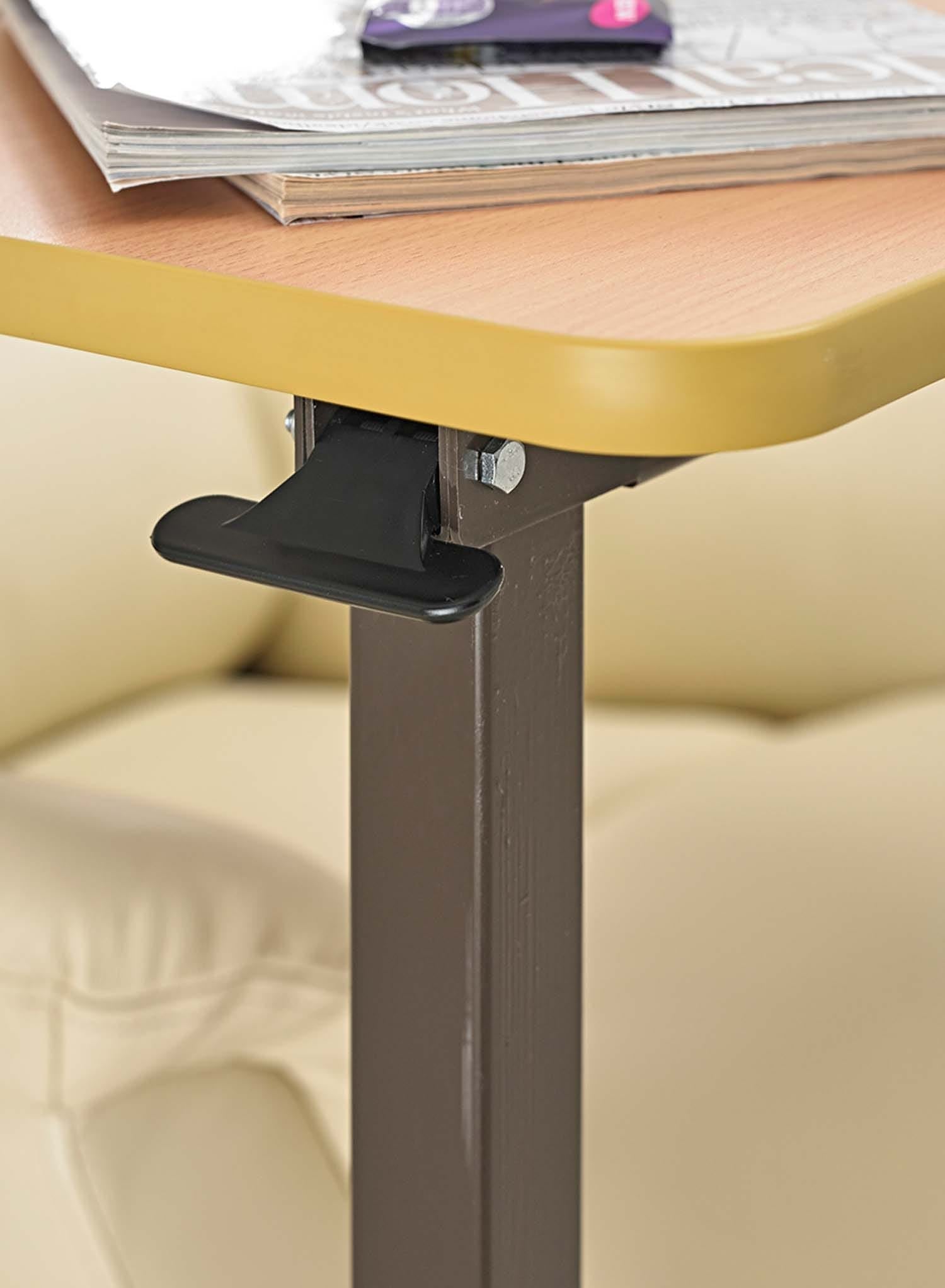 We've finished the Universal Adjustable Table in an attractive beech wood laminate that's easy to clean and scratch-resistant. Just the thing for those prone to spillages! And with its lipped-edge table top surface, you won't need to worry about books, magazines or remotes slipping off and falling to the floor.